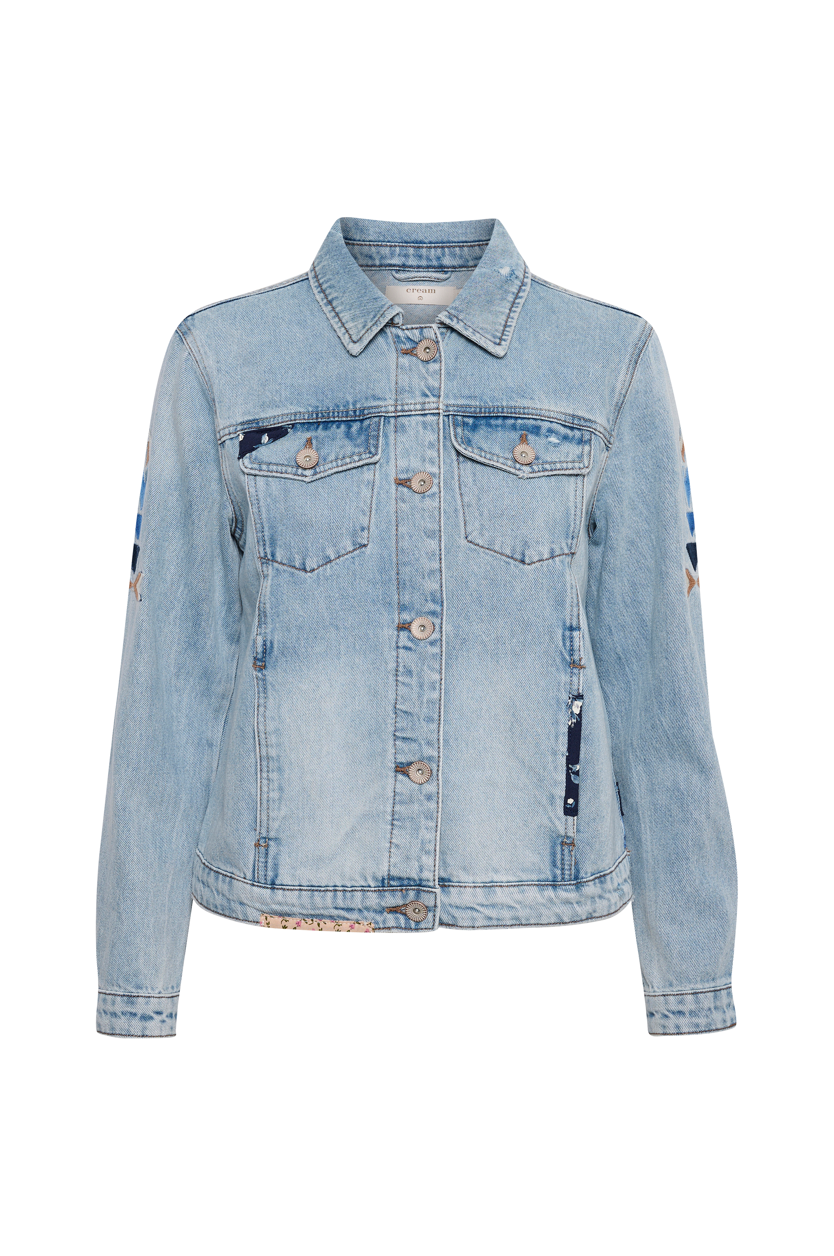 • Knappar fram• Två bröstfickor• Två sidfickor• Gjord av denim• Dekorativt lappverk bak• Broderat mönster på ärmarna och bak• Längd: 55 cm i storlek 36