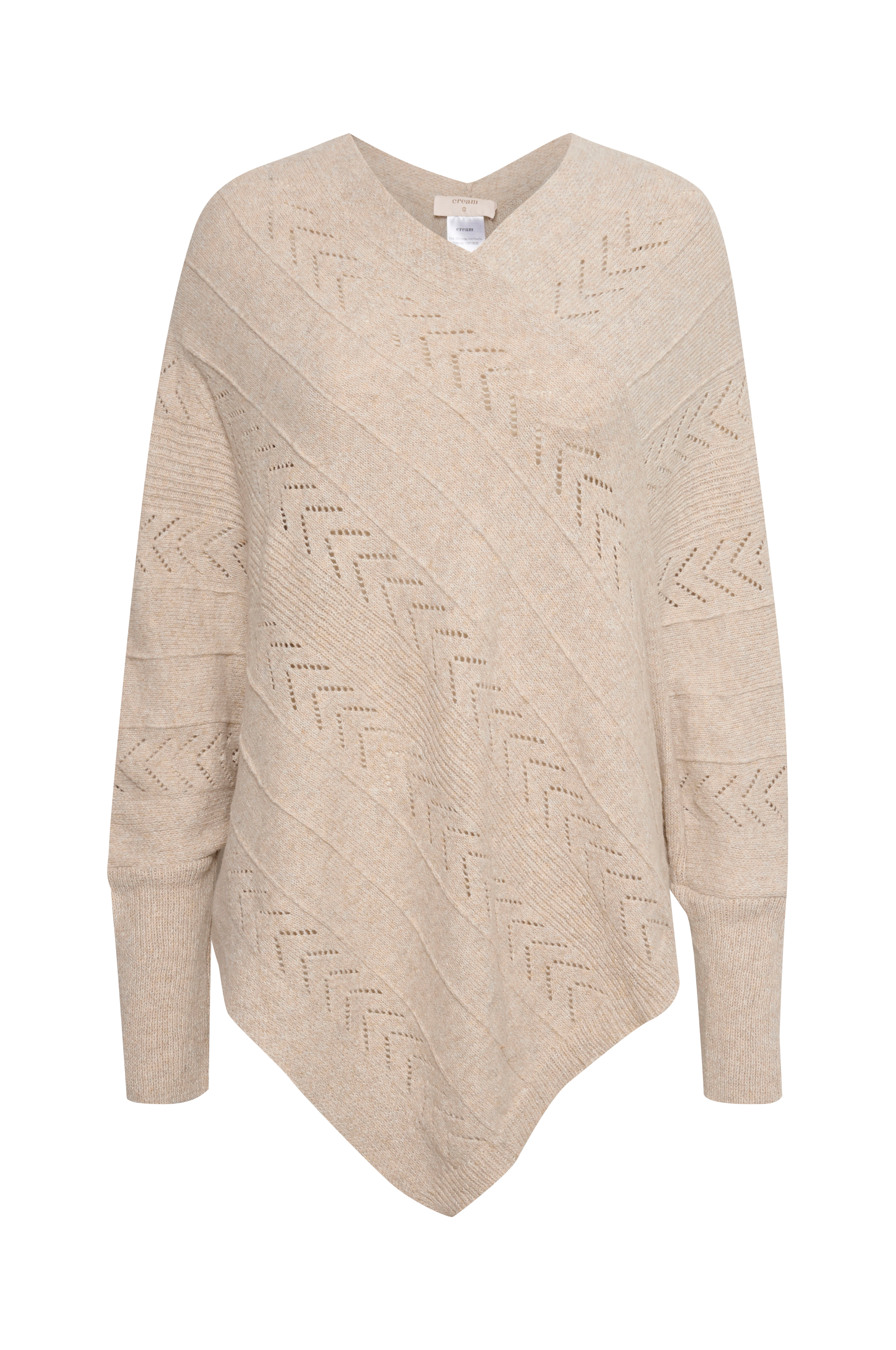 • Mönsterstickad modell med tippskuren nederkant• V-ringad hals• Öppna sidor• Bred, ribbstickad mudd