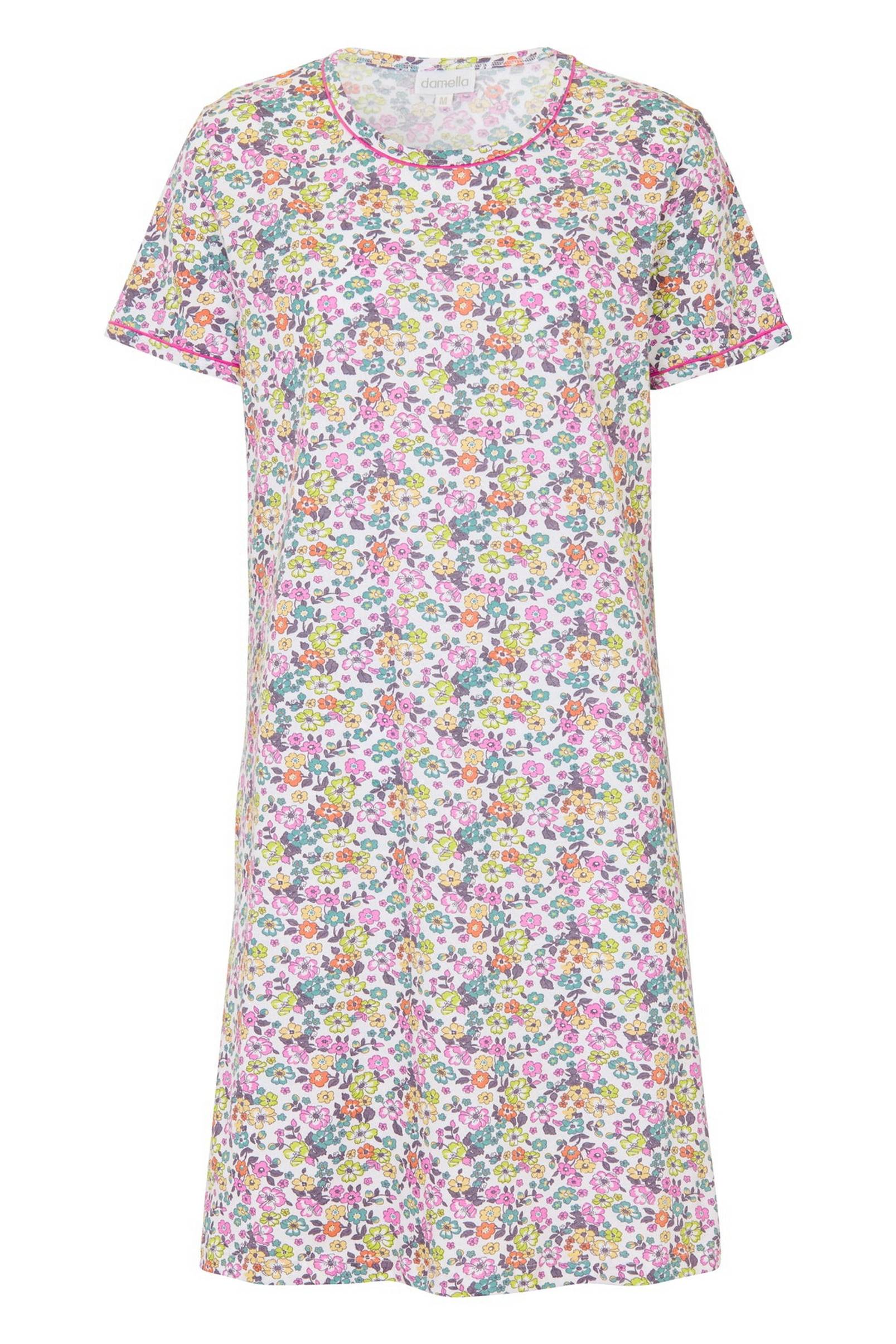 • Blommigt nattlinne i bomullstrikå• Korta ärmar