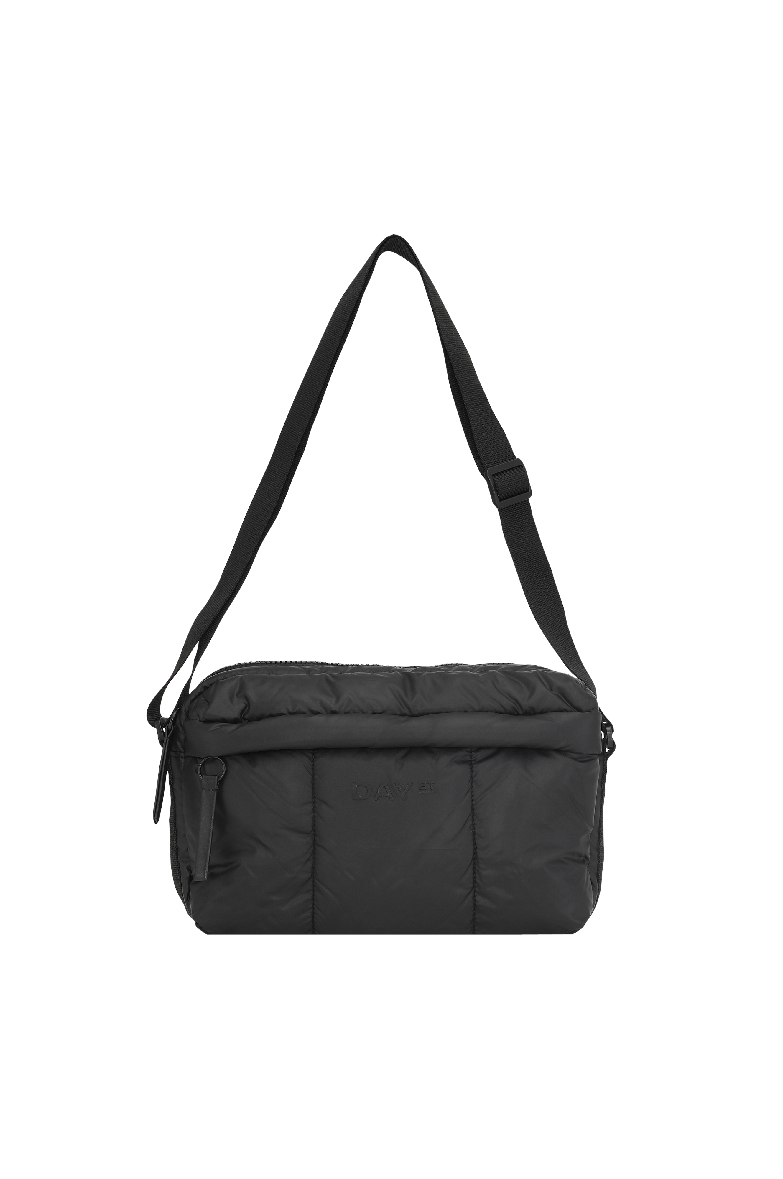Väska tillverkad i återvunnet material. I huvudfacket finns en invändig blixtlåsficka och den har även en framficka med dragkedja. Väskan har en justerbar rem, så du kan bära väskan både som axelväska och som crossbody. Den är gjord i ett lätt glänsande material med quiltad look. Mått: B29 x H19 x D9,5 cm.