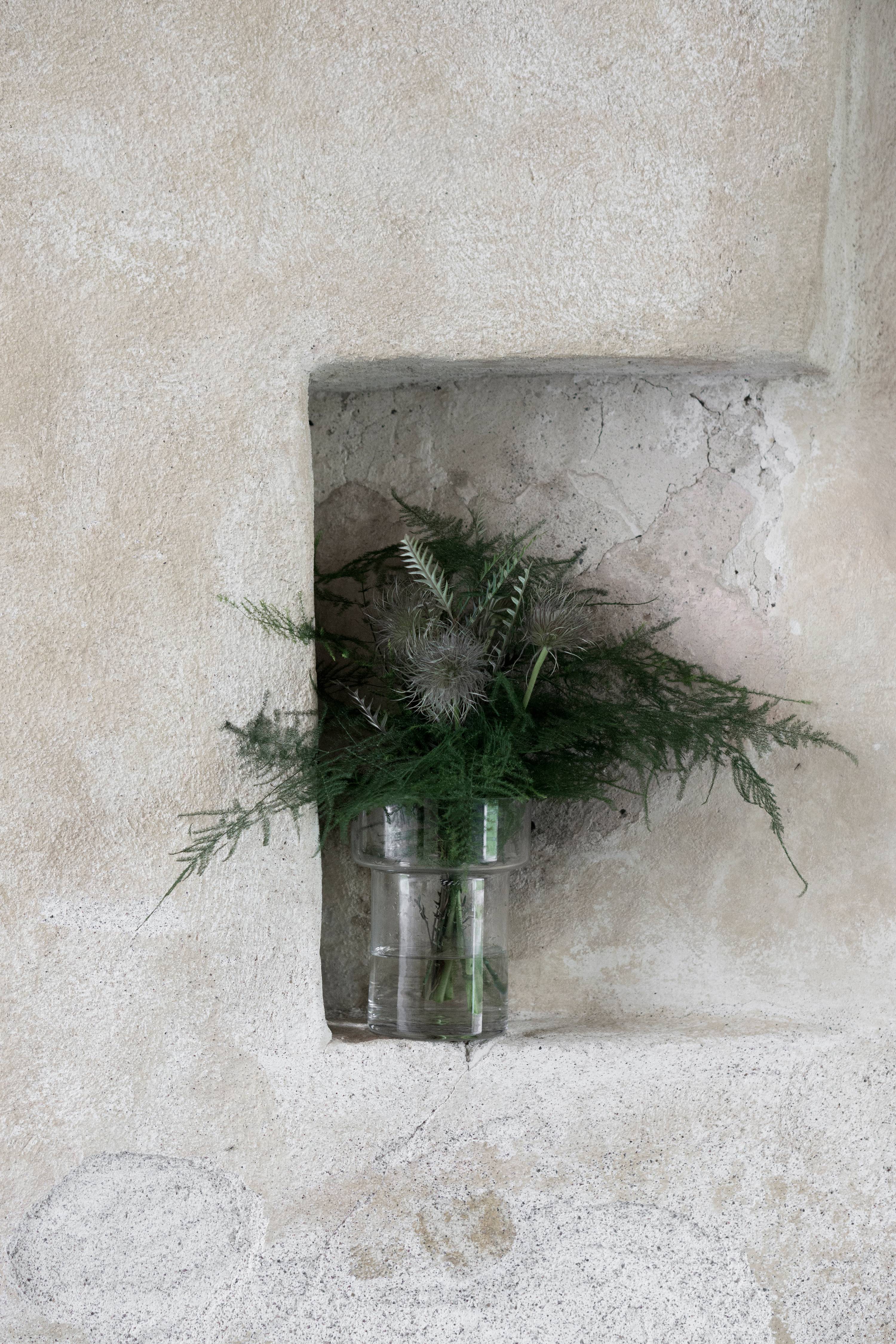 Vas av glas. Perfekt för alla typer av buketter. Höjd 12 cm, diameter 8,5 cm.