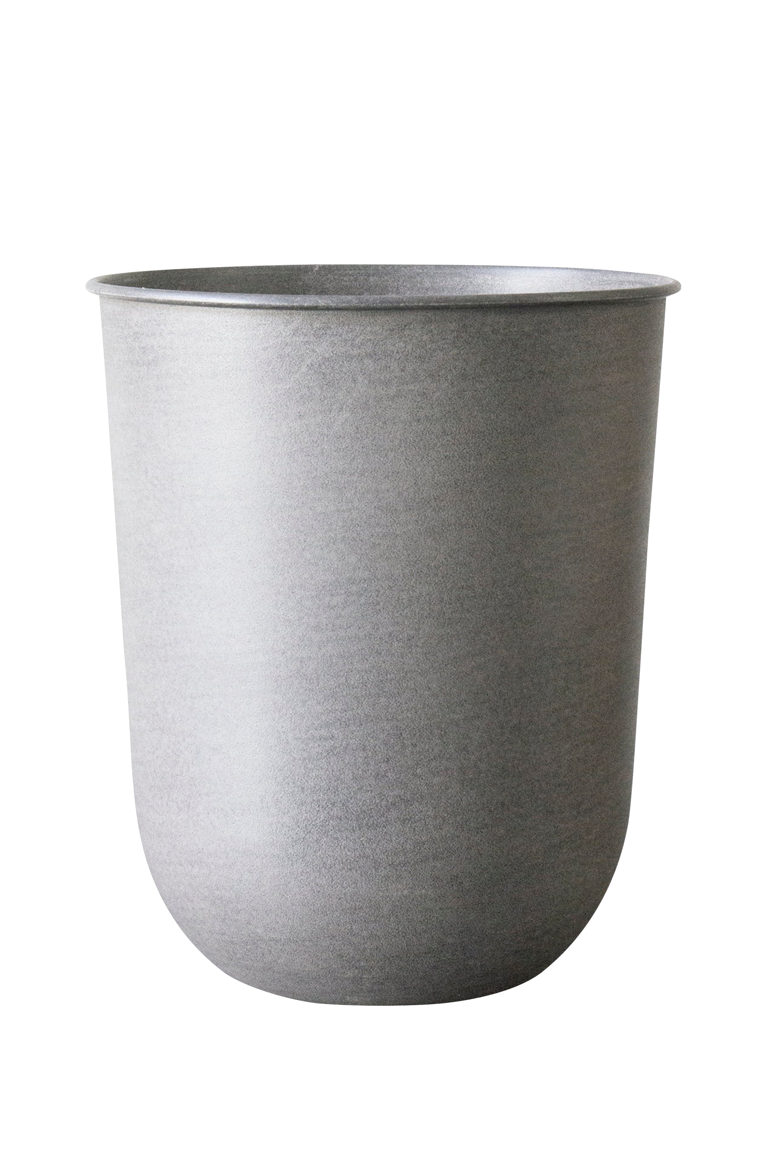 Kruka Out small. Out är en elegant serie gjord av glaserad plåt, vilket innebär att den kan stå utomhus året runt. I botten finns ett dräneringshål som förhindrar att krukorna fylls med vatten. Detta hål kan också stängas med medföljande kork av plast. Diameter 30 cm och höjd 30 cm.