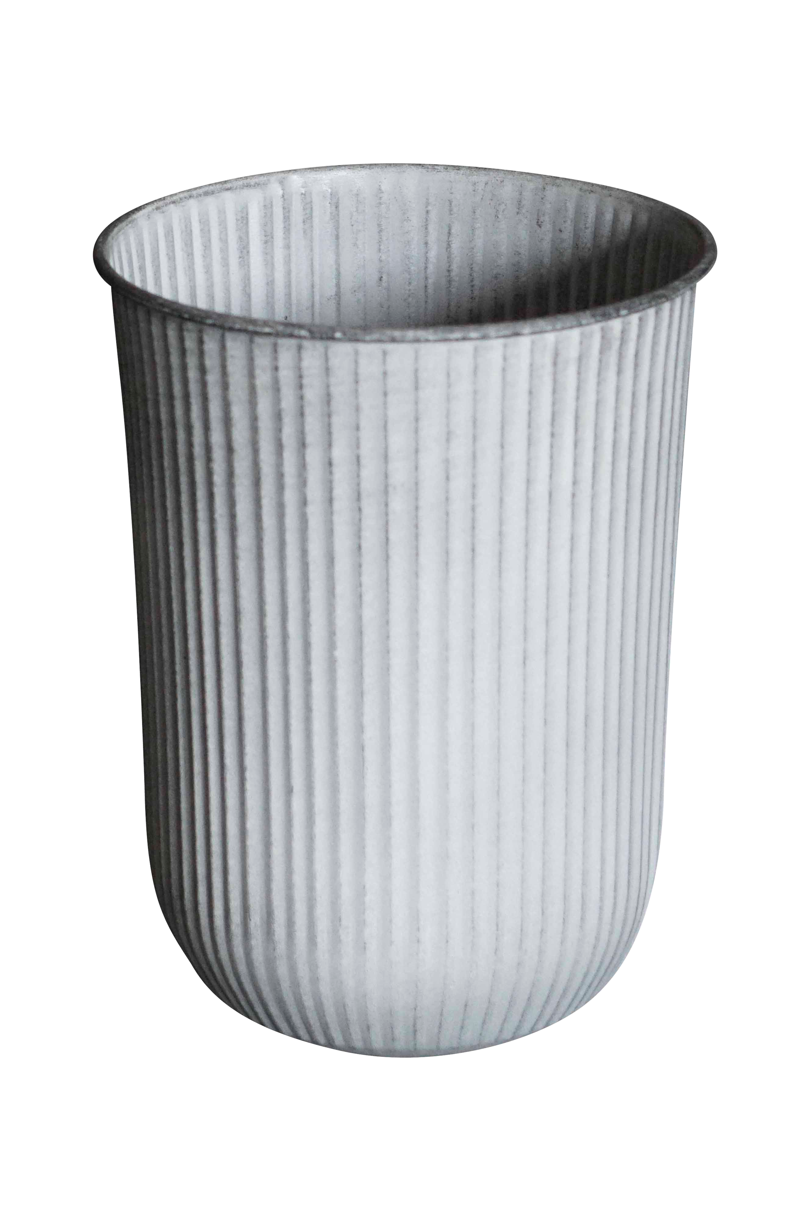 Utekruka i metall som kan stå utomhus året runt. I botten finns ett dräneringshål som förhindrar att krukorna fylls med vatten. Diameter 30 cm och höjd 40 cm.