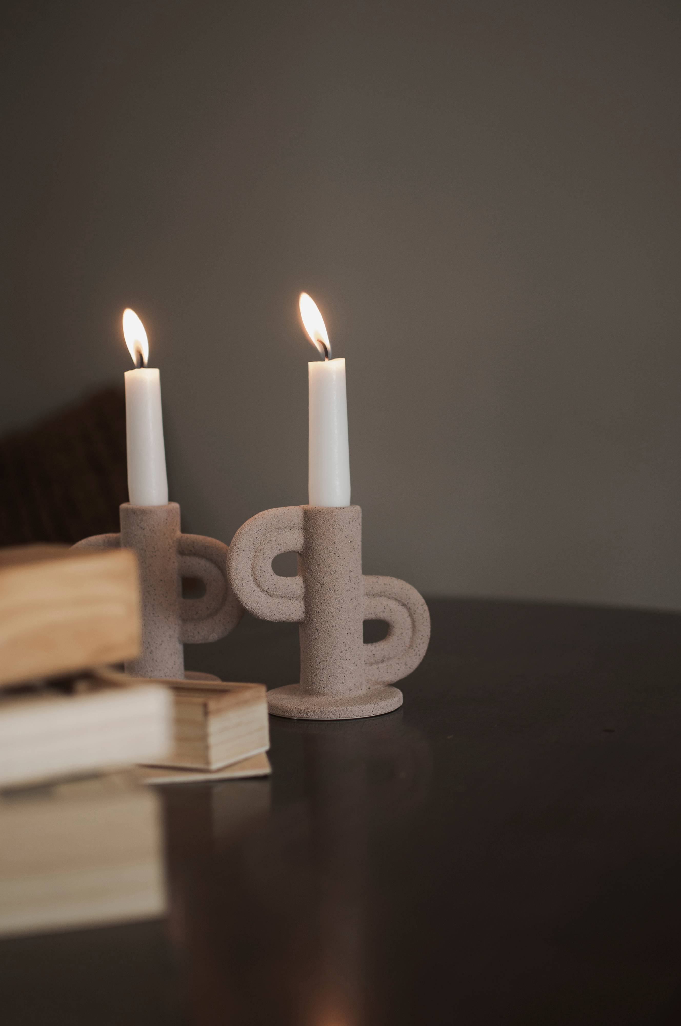 En vacker ljusstake med sandig yta. Tillverkad av keramik. Mått: 7,5 cm i diameter, höjd 11 cm.