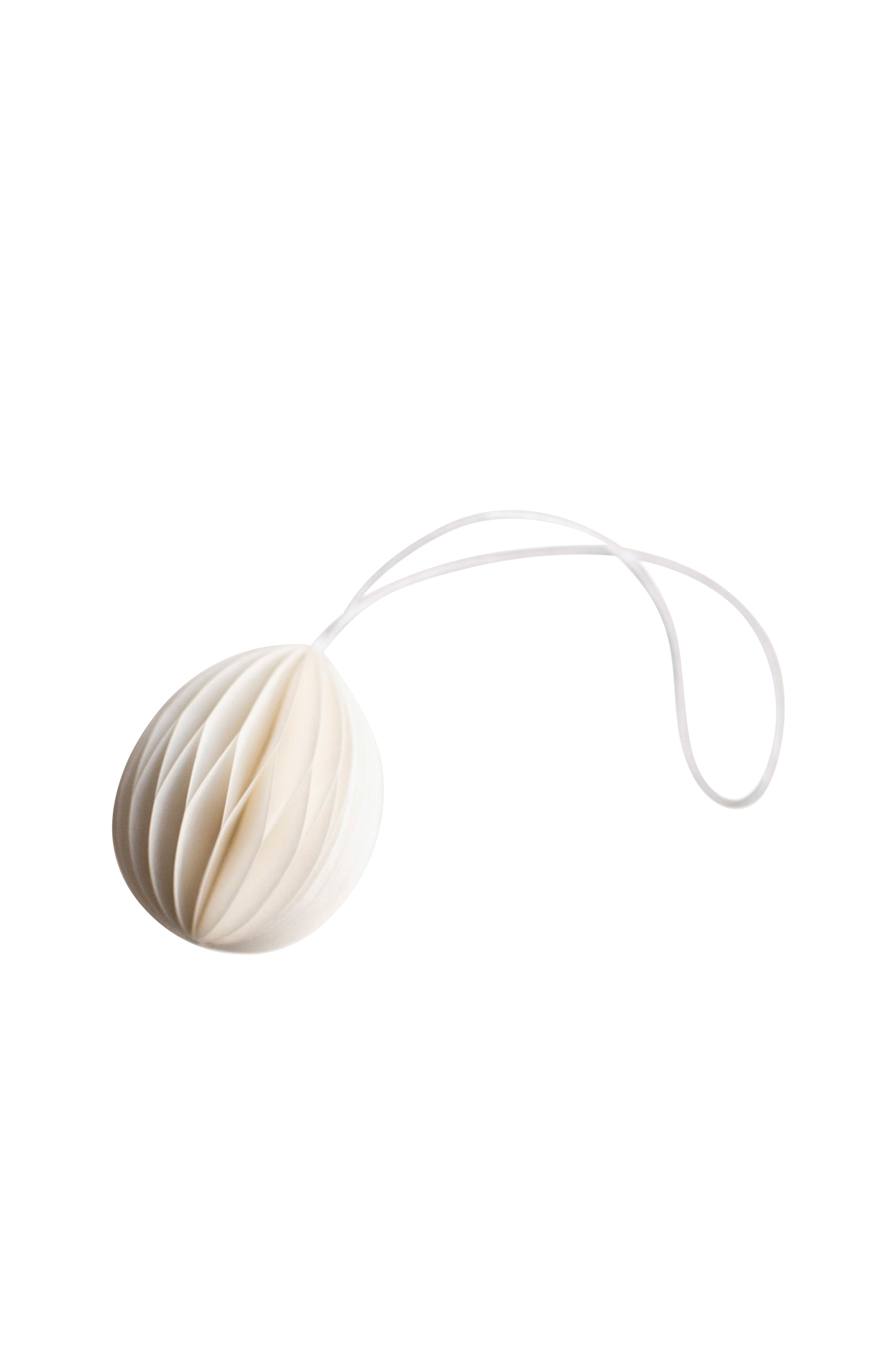 En enkel och hopvikbar, äggformad dekoration, perfekt i påskriset.