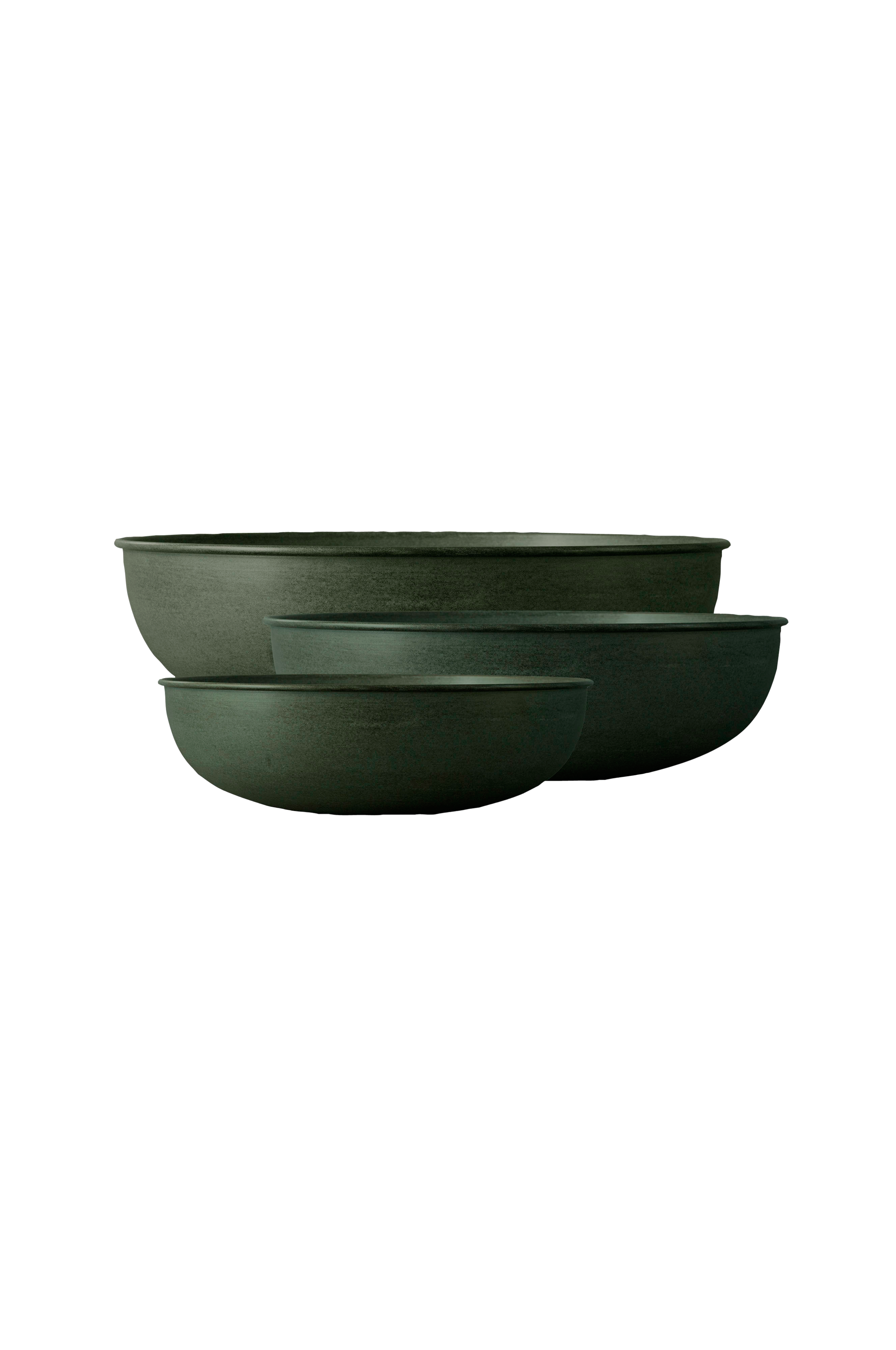 Out är en serie krukor och skålar formgivna av Dbkd. Tillverkade av glaserad plåt vilket gör dem lätta att hantera. I botten finns ett dräneringshål som hindrar växterna från att bli övervattnade. Detta hål kan förslutas med ett bifogat plastlock om så önskas, det gör den dock inte 100% vattentät, läckage kan förekomma. Ytan kommer att patineras med tiden. Finns i flera storlekar och färger. Ø 30, 40 & 50cm. H 10, 14, 16 cm.