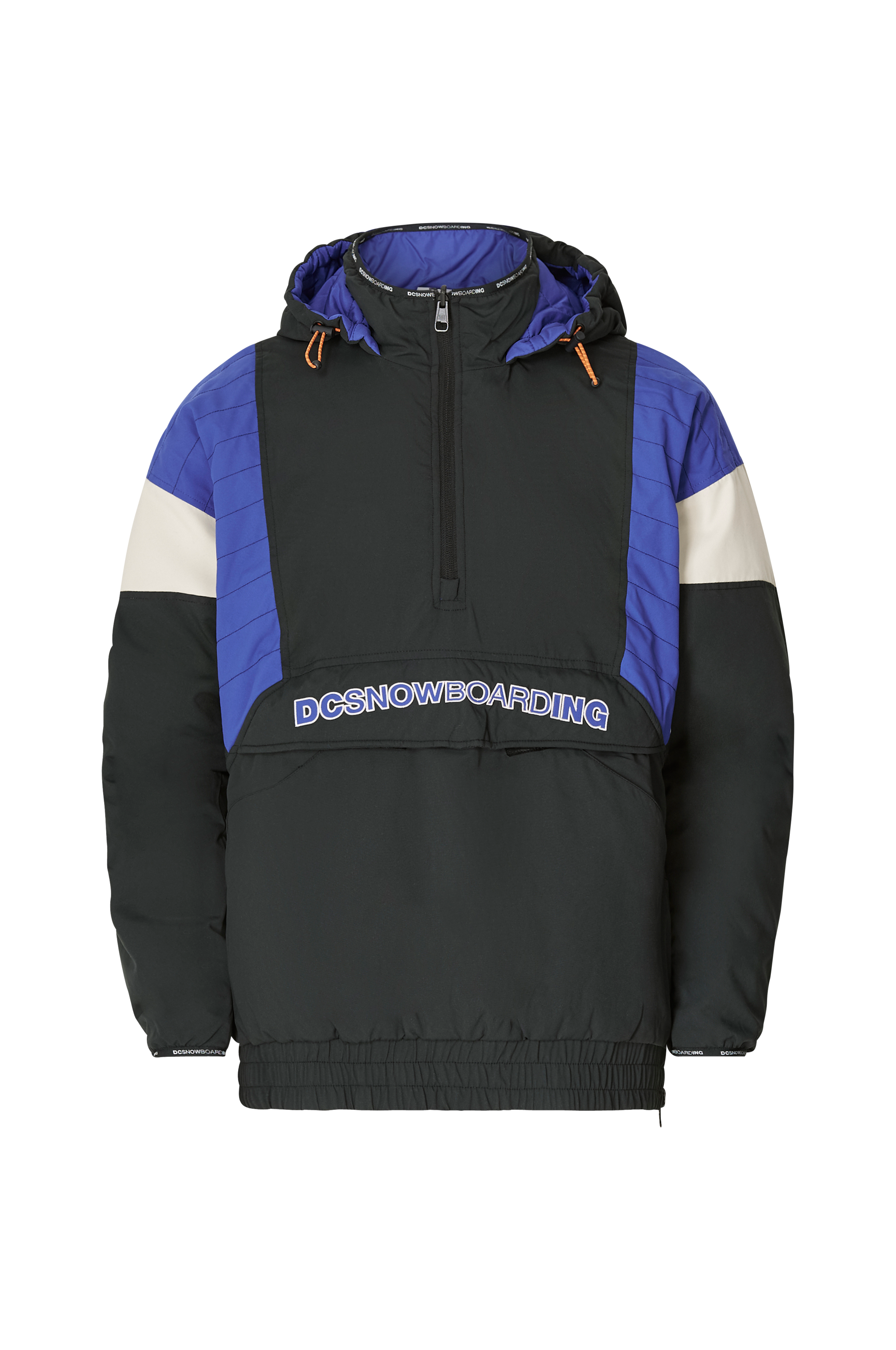 Vändbar, vadderad snowboardjacka i anorakmodell. Den ena sidan har ett quiltat mönster runt om och den andra sidan är i slätt, vävt tyg med quiltade sömmar runt axlarna.