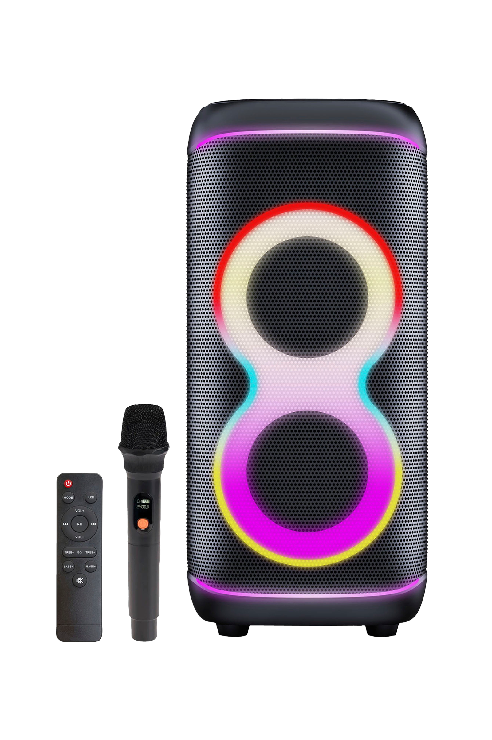 • Bluetooth-högtalare med ljusfunktion och 2 x 6,5-tums woofers