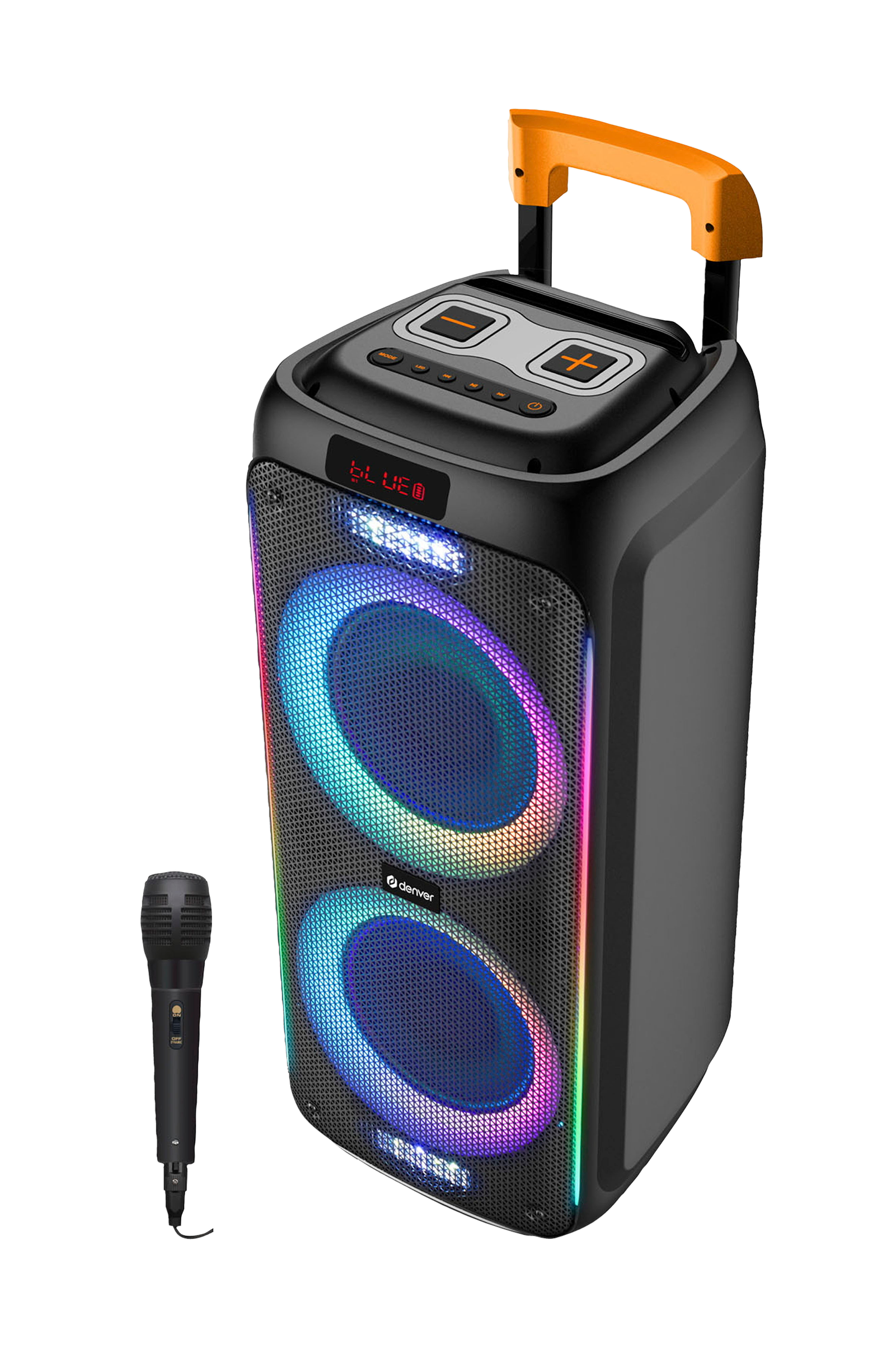 • Bluetooth-högtalare med LED-belysning och 2 x 8" woofers