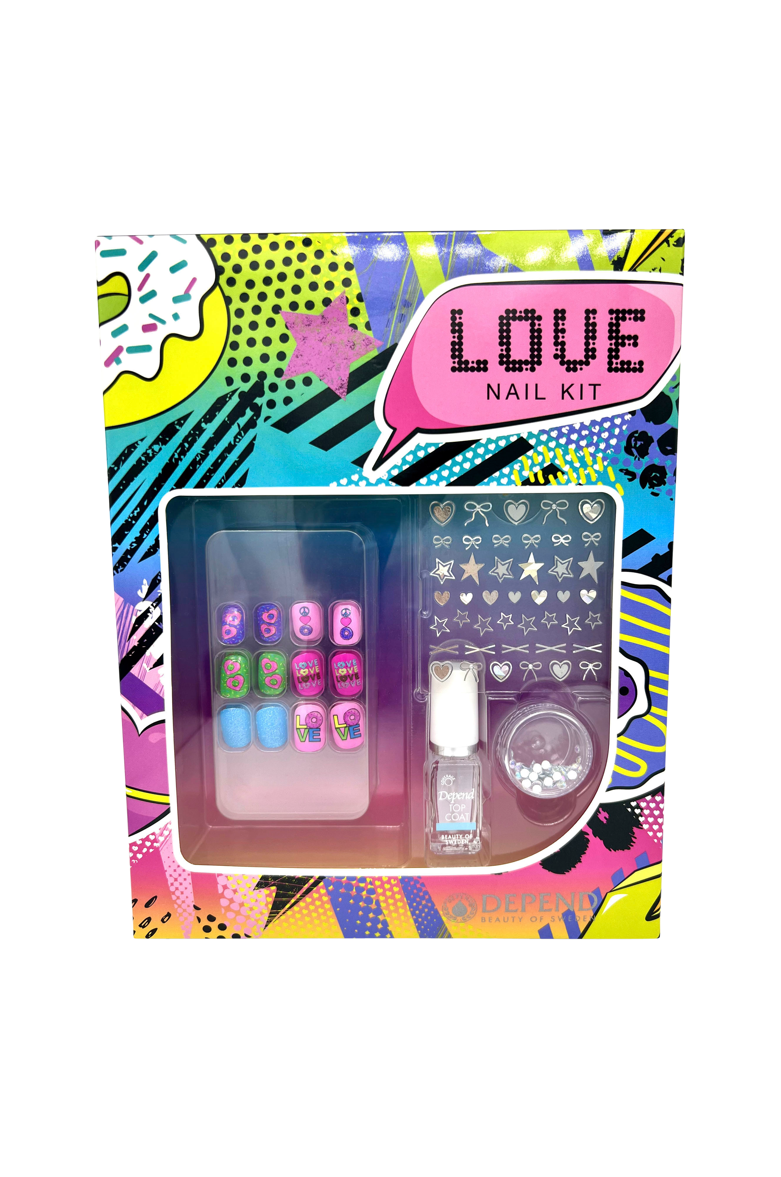 Överraska ditt barn med vårt fantastiska Love Nail Kit! Detta kreativa kit innehåller 24 press-on nails , en topplack, nails klistermärken och glittrande strass. Perfekt för små nail artister som vill designa sina egna förtrollande och färgglada nail skapelser!