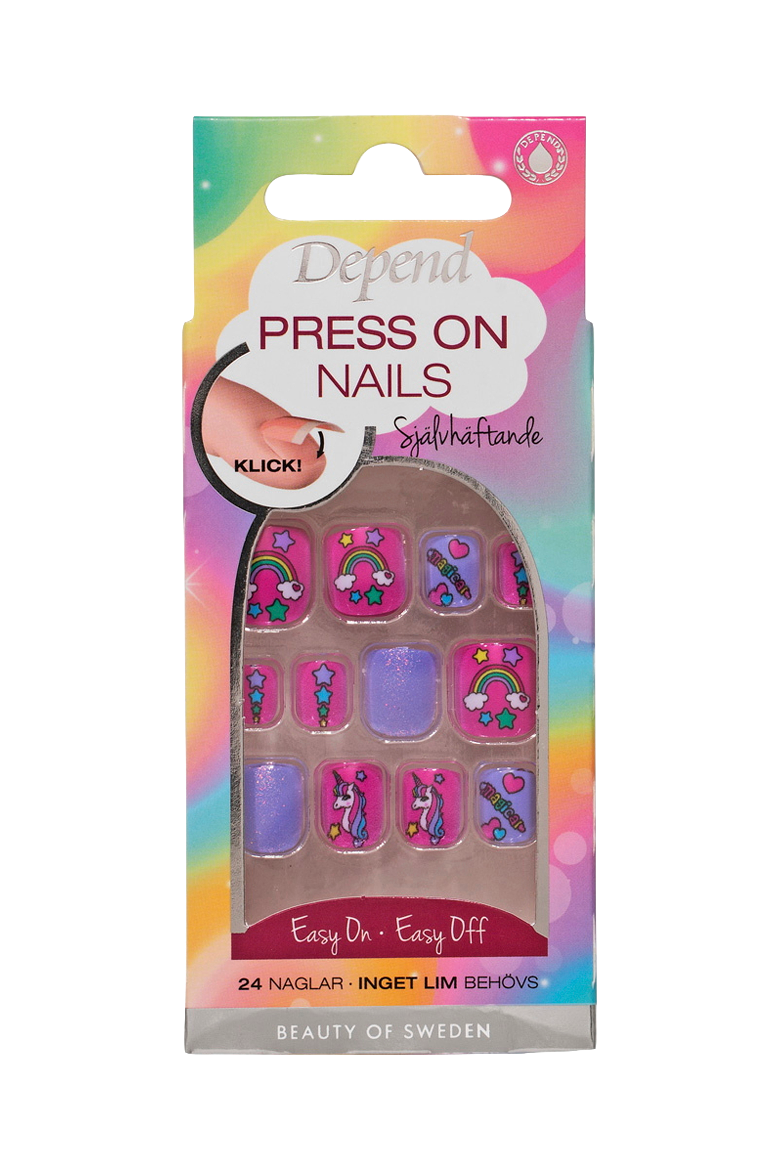 Självhäftande lösnaglar. 24 naglar. Inget lim behövs.Lätt att applicera och ta bort utan att skada din naturliga nagel
