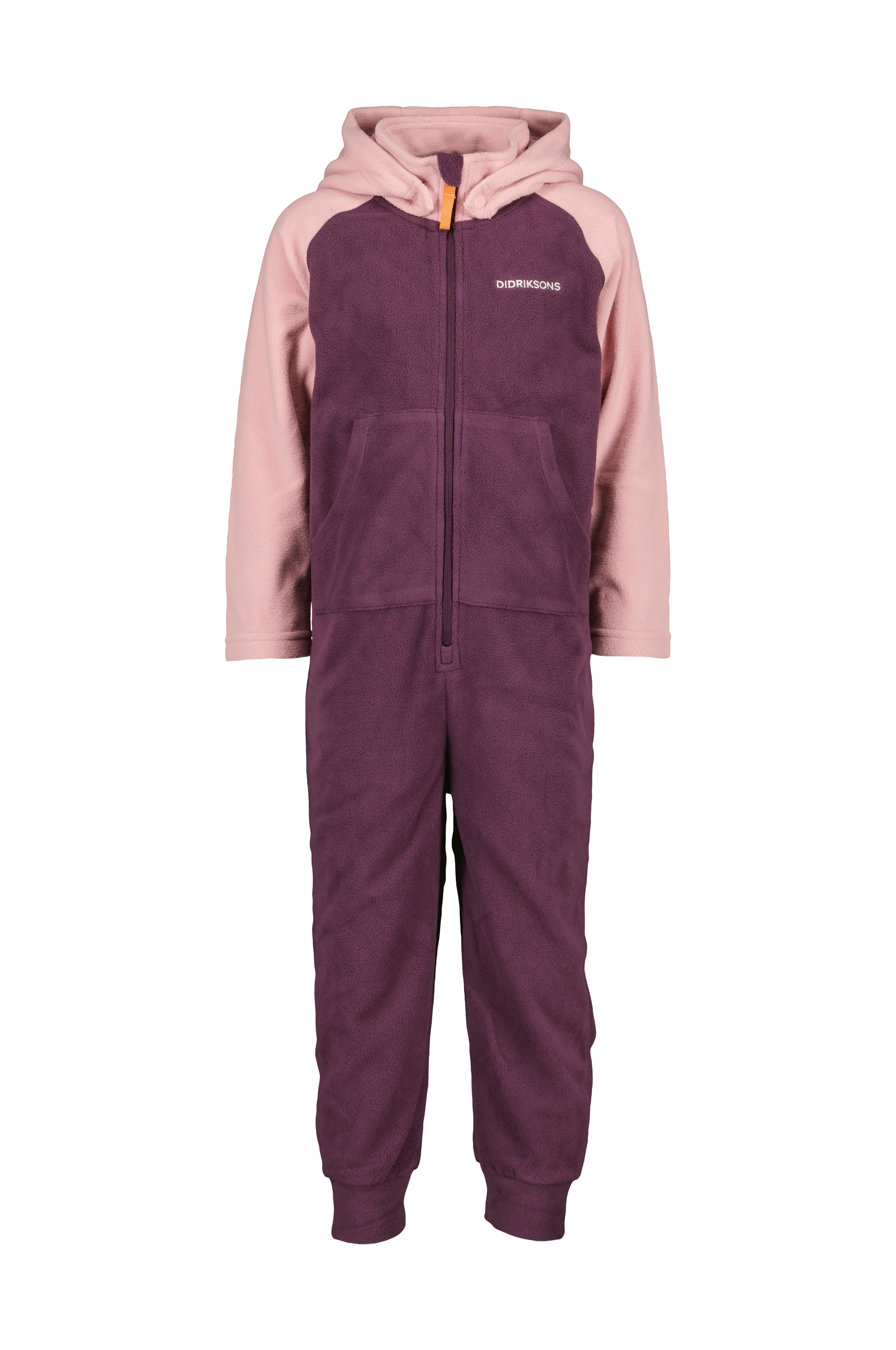 Overall tillverkad i värmande polyestermikrofleece med fyrvägsstretch. Avknäppbar huva. Stängning med dragkedja. Muddar i bensluten.