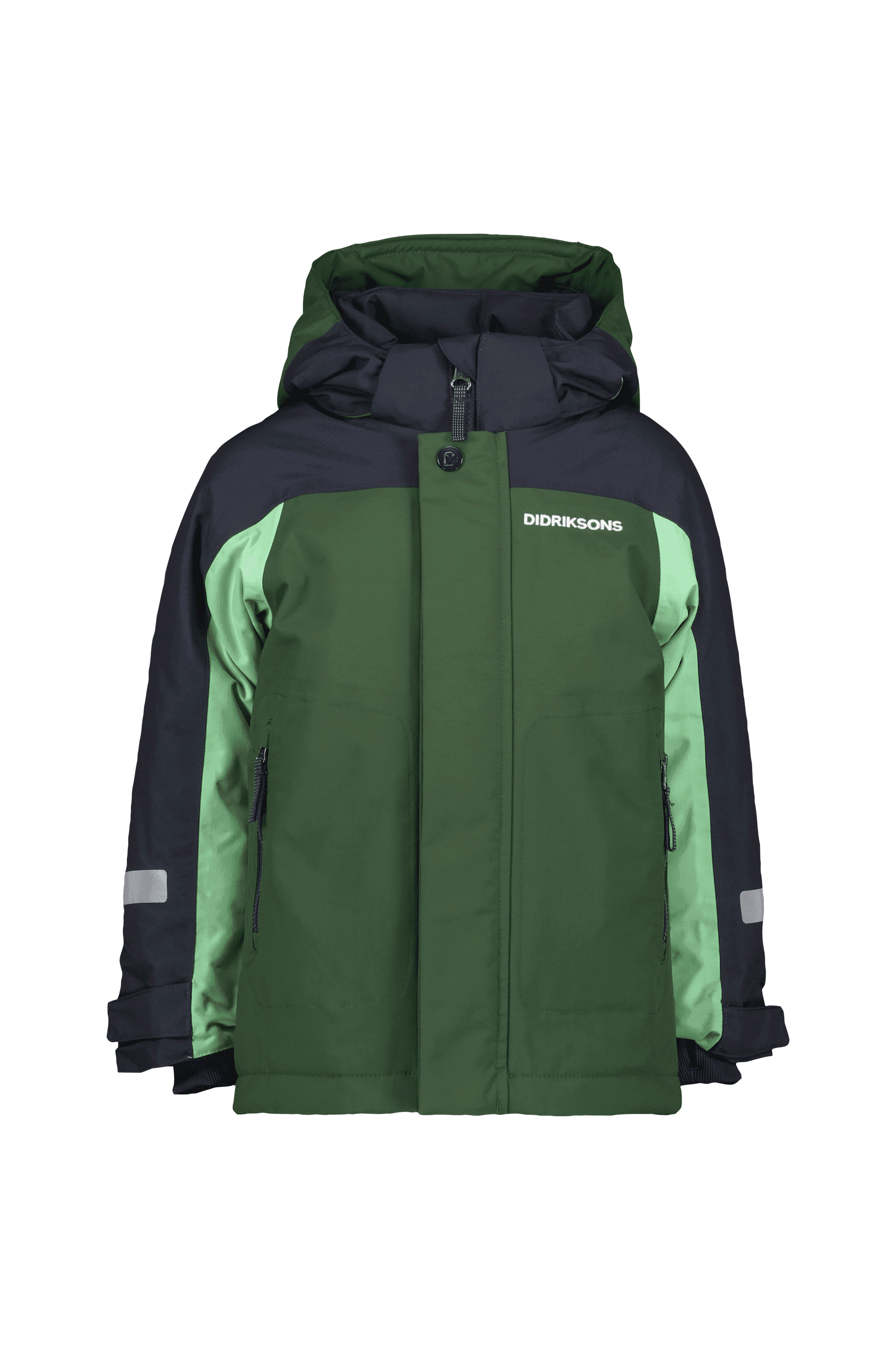 • Stängning med dragkedja och dubbel vindslå med kardborrestängning