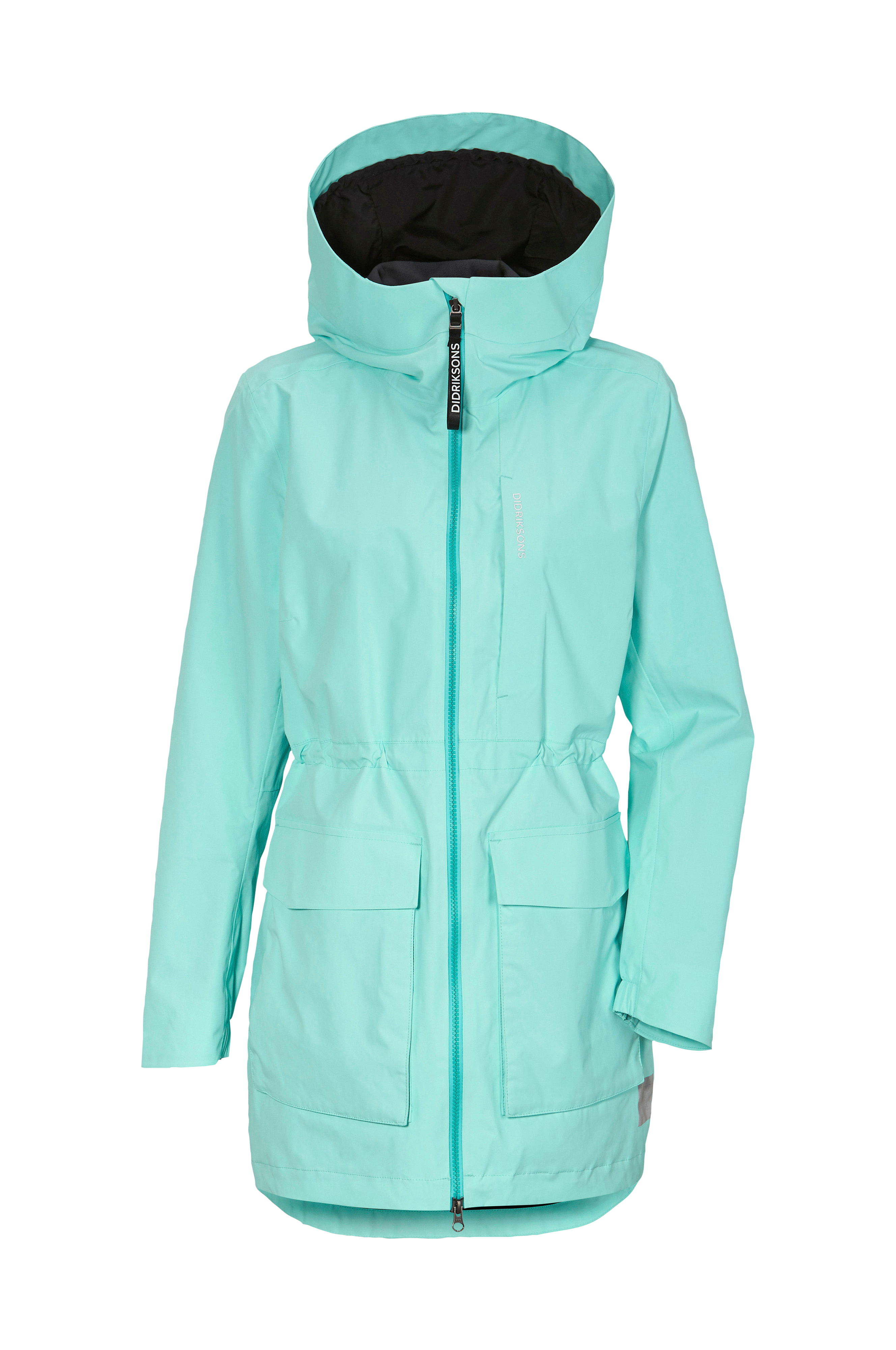 En vardagsparkas med en sportig look och många funktionella detaljer. Den är vind- och vattentät med tejpade sömmar och har en avslappnad passform med rak silhuett. Midjan är justerbar. Fast, justerbar huva. Tvåvägsdragkedja framtill. Innanför dragkedjan finns en knapp för smidig ventilation. Två framfickor med knappstängning, en bröstficka med dragkedja och en innerficka i mesh. Inuti höger framficka finns ett reflexband att fälla ut vid behov. Vattenavvisningen är PFC-fri. Längd ca 89 cm i stl 36.