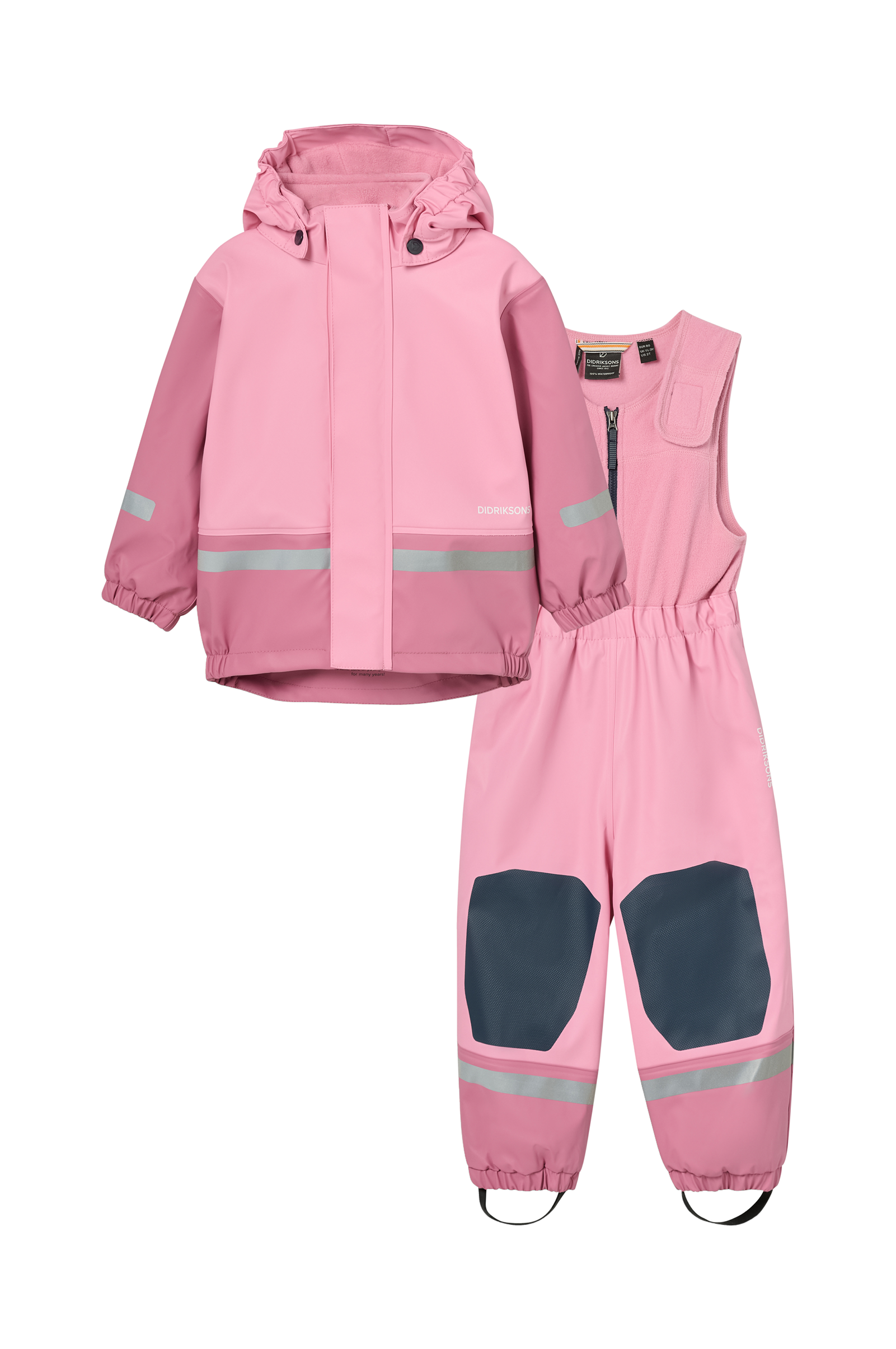 Fin uppsättning, tål mycket slitage och regn. Jag tyckte byxorna var lite små, men det berodde på att jag trodde vi beställde 116 och inte 110. Men jackan passade väldigt bra på barnet som är 112…
