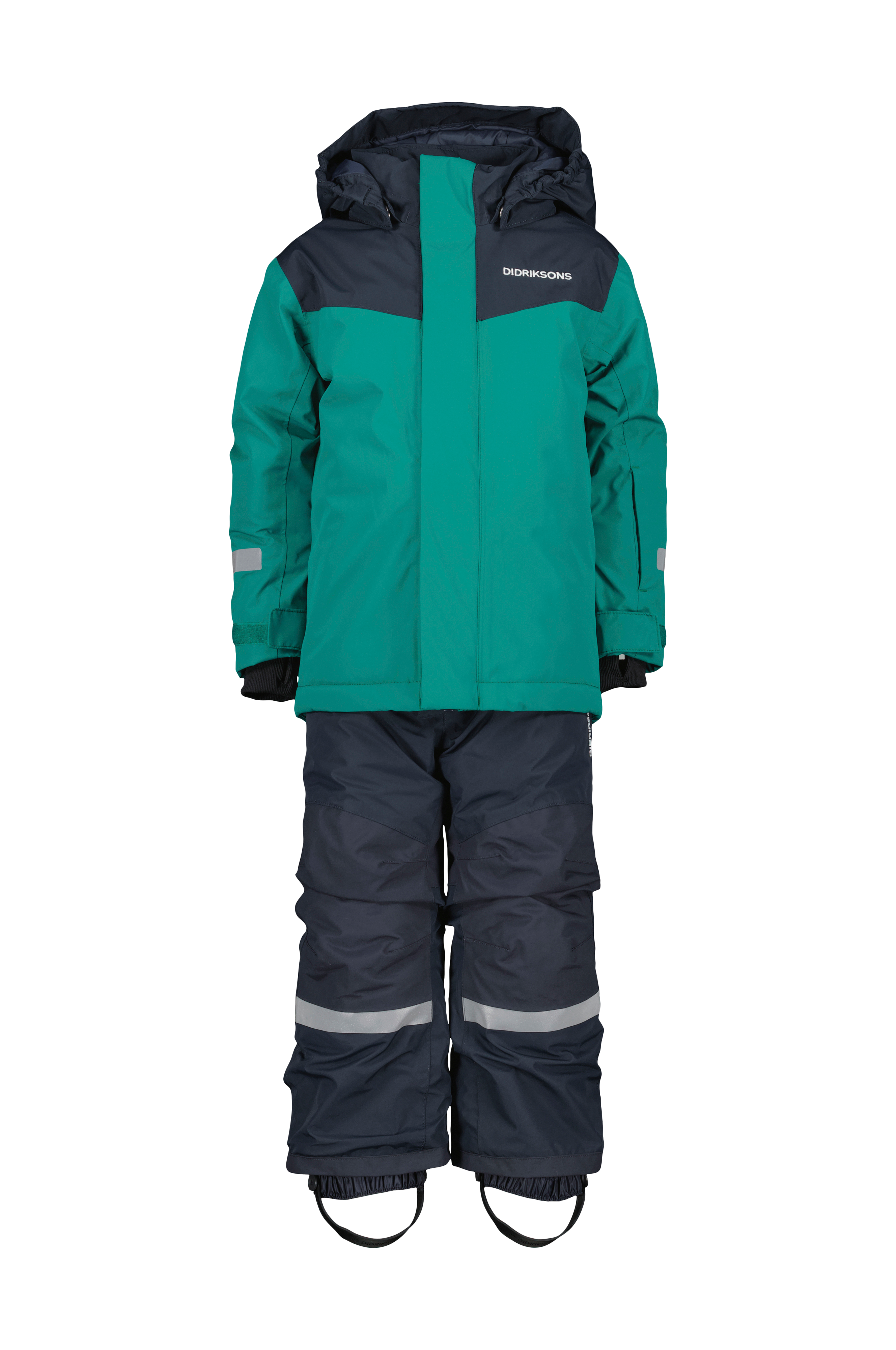 Ett vadderat set som är vattentätt och vindtätt med tejpade sömmar. Det är mjukt, andningsbart och lätt. PFC-fri vattenavvisning.