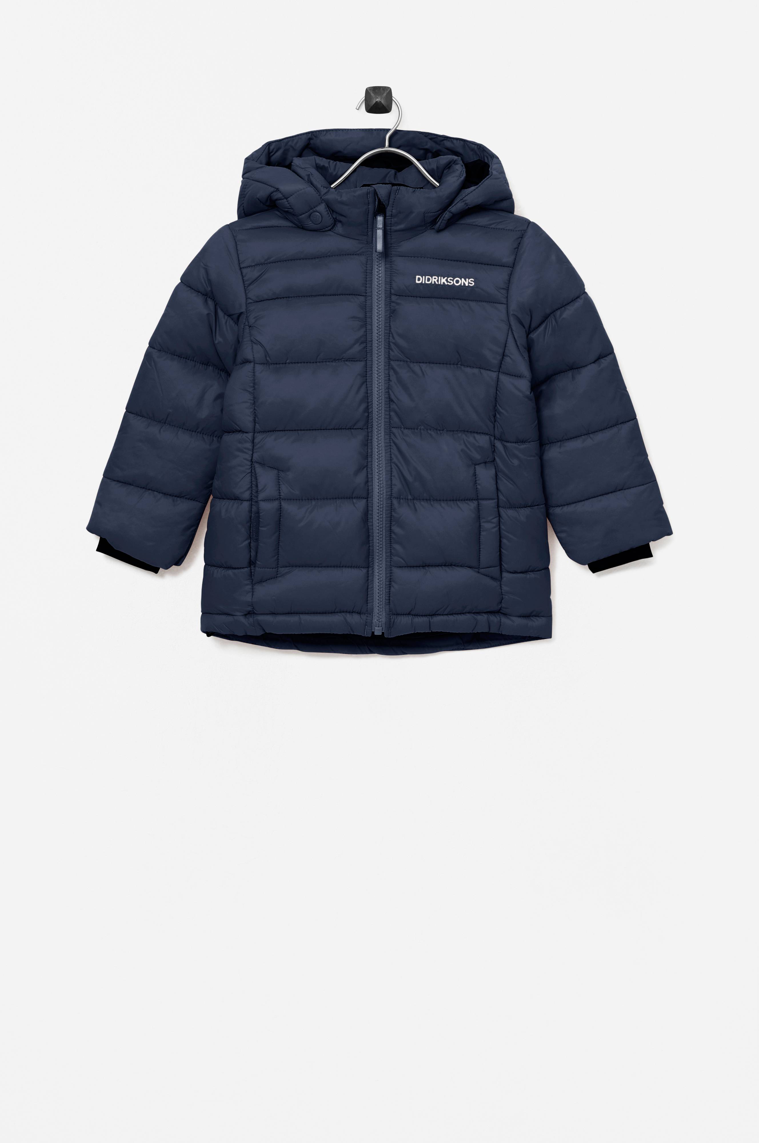 • Vadderad jacka • Vattenavvisande, vindtätt material • Dragkedja fram • Två fickor med kardborrefäste • Avtagbar huva • Reflexdetaljer • Trikåmudd med tumhål i ärmsluten • Produkten har en vattenavvisande behandling som är snällare mot miljön och fri från tillsatta perfluorerade ämnen (PFC). Du kan behöva återaktivera impregneringen om vattnet slutar pärla sig på ytan. Detta gör du genom att tillsätta värme på låg temperatur genom te.x. strykning eller torktumling. Vid behov kan även impregneringspreparat behövas.