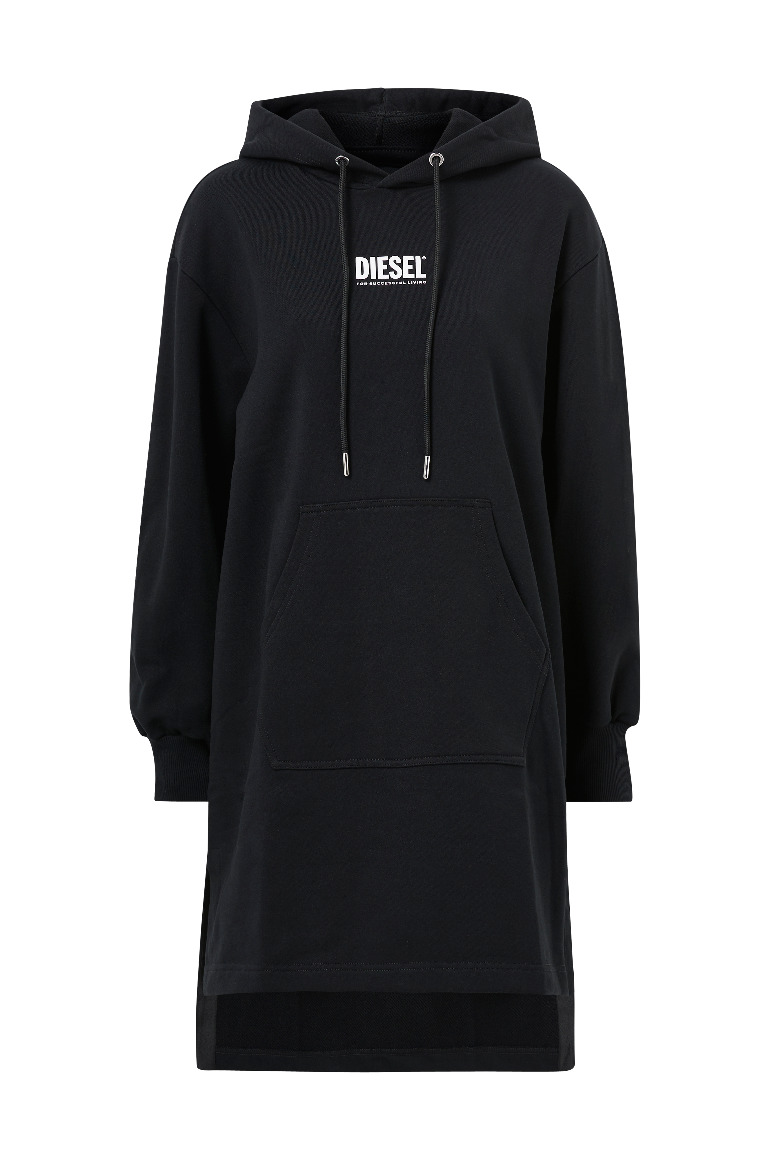 Sweatklänning med avslappnad passform. Klänningen har en huva med dragsko, gummitryckt logo fram och magficka. Ribbade muddar i ärmsluten. Sprund i sidorna och längre bakstycke. Längd bak ca 104 cm i stl S.
