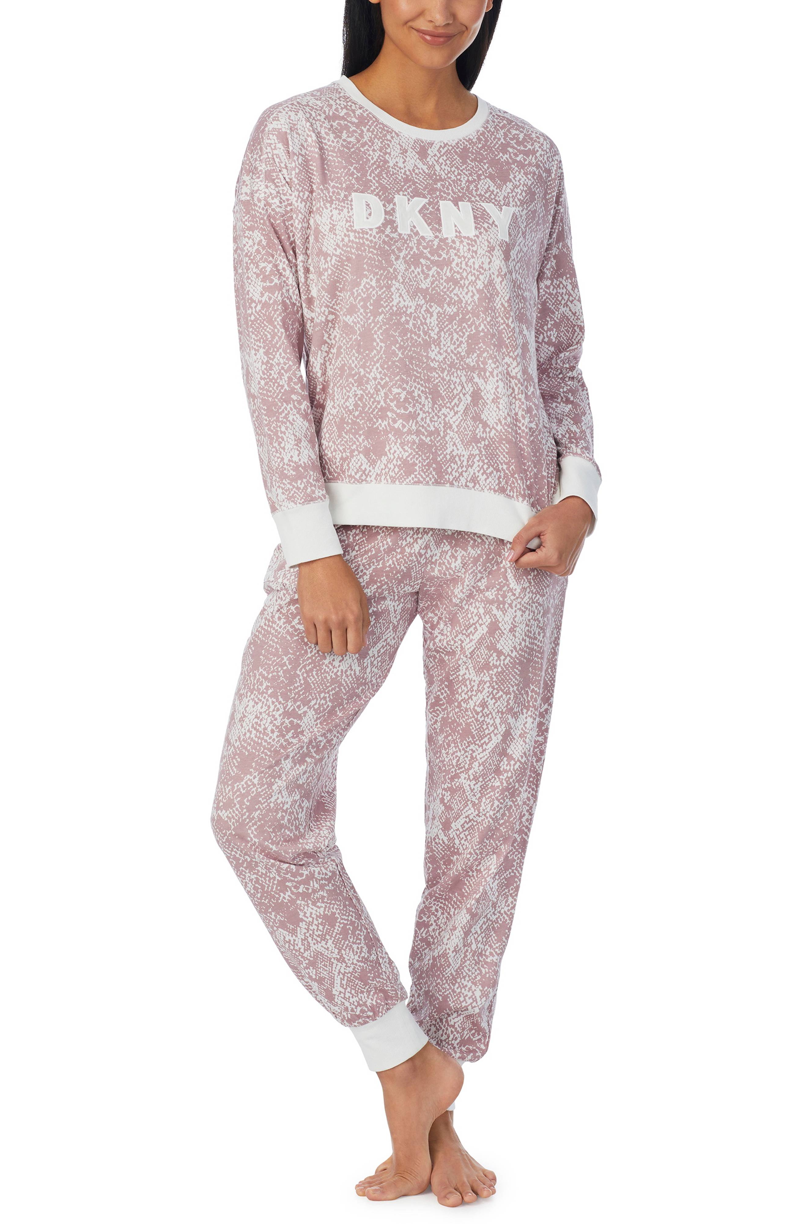 Pyjamasset med långärmad topp och byxor. Långärmad topp med rund, ribbad halsringning. Broderi fram. Ribbmuddar i ärmsluten och nedtill. Byxorna har ribbad, elastisk linning med dragsko, fickor i sidorna och ribbade muddar i bensluten.