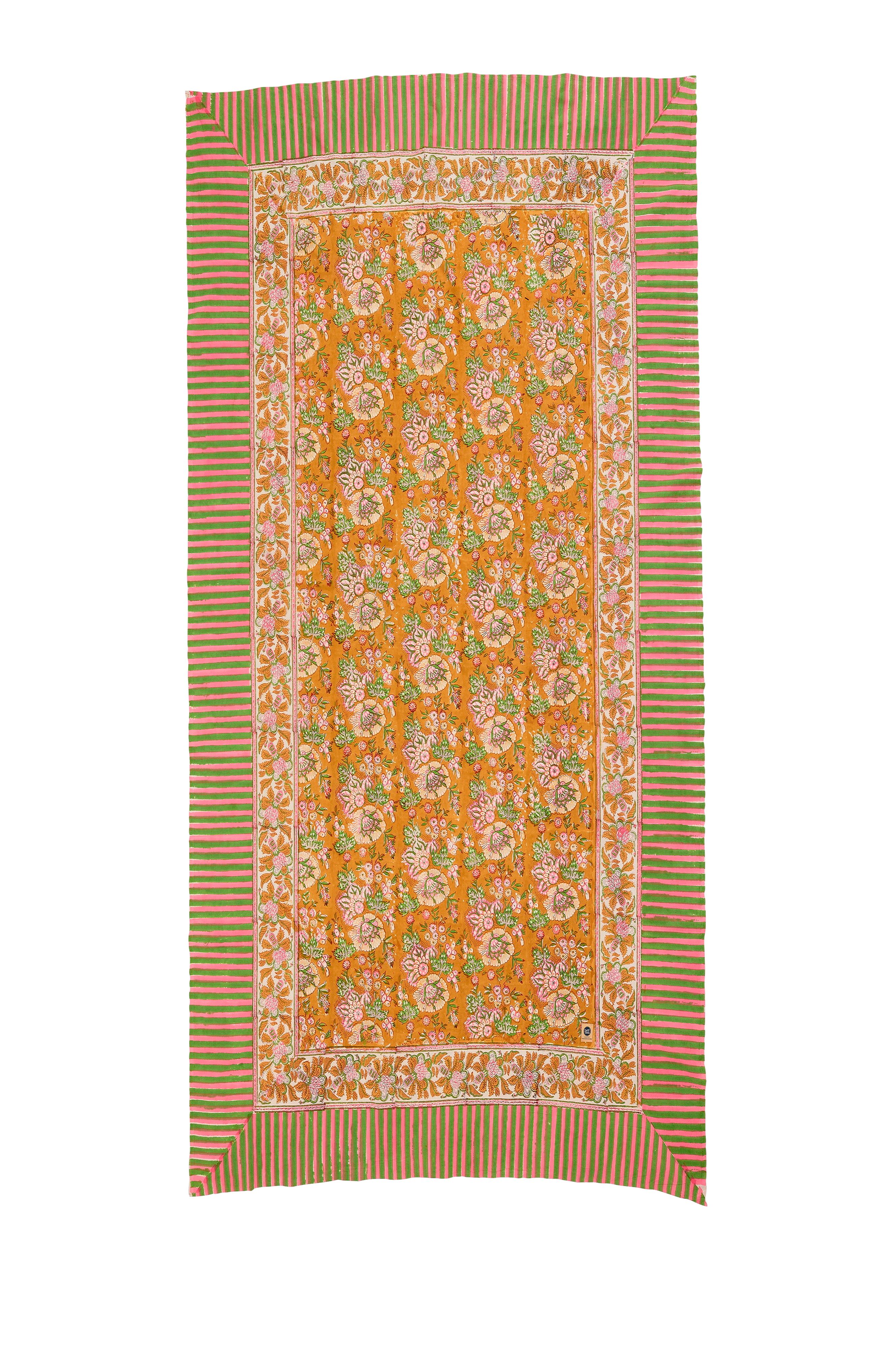 Ge ditt matbord en glad och hantverksmässig uppgradering med Marigold Table Throw. Denna extra långa bomullsduk (160 x 350 cm) är perfekt för stora bord och är handgjord med traditionell indisk blocktrycksteknik. Med sitt varma blommönster och mjuka rosa och gröna ränder ger denna design karaktär och charm till både inomhus- och utomhusmiljöer. Denna duk är blocktryckt för hand på mjuk, slitstark bomull. Varje tryck appliceras manuellt, vilket innebär att varje exemplar är unikt och tillverkat med stor omsorg. Resultatet är ett livfullt mönster med små ojämnheter - kännetecknet för äkta hantverk. Produktspecifikationer: