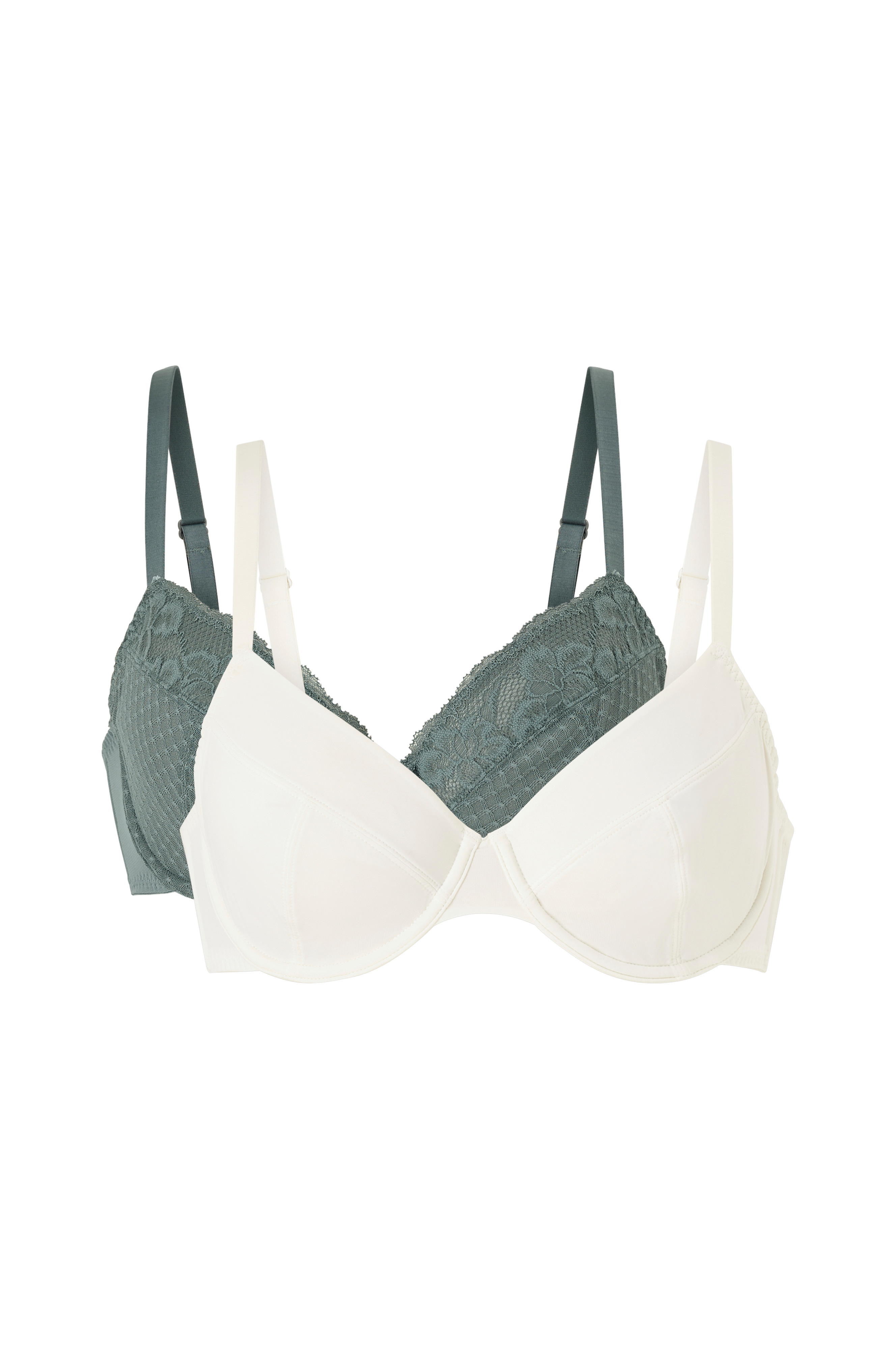 • 2-pack med olika färger• Ovadderade kupor• Justerbara axelband• Hysk- och hakstängning bak• Den gröna är i mesh med spetsdetaljer på kuporna