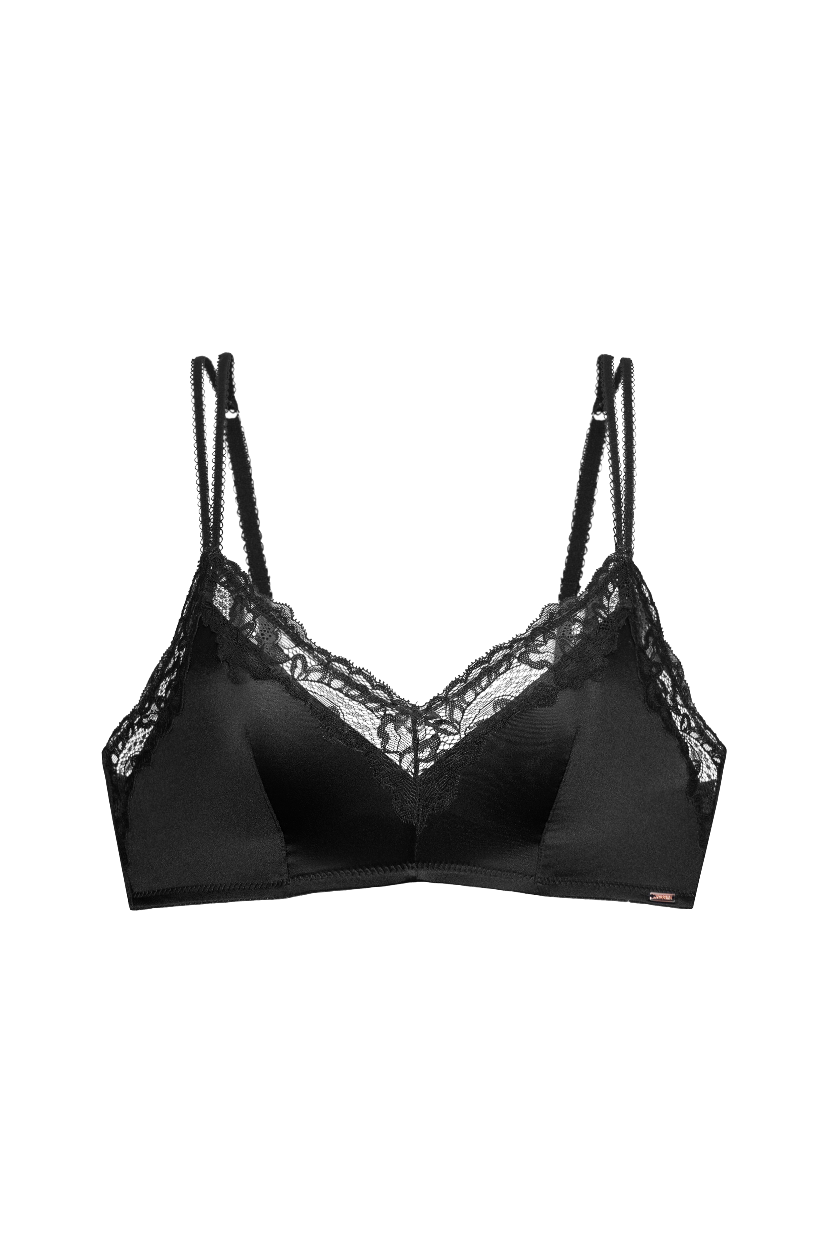 • Mjuk-bh i glansigt material med spets vid kuporna