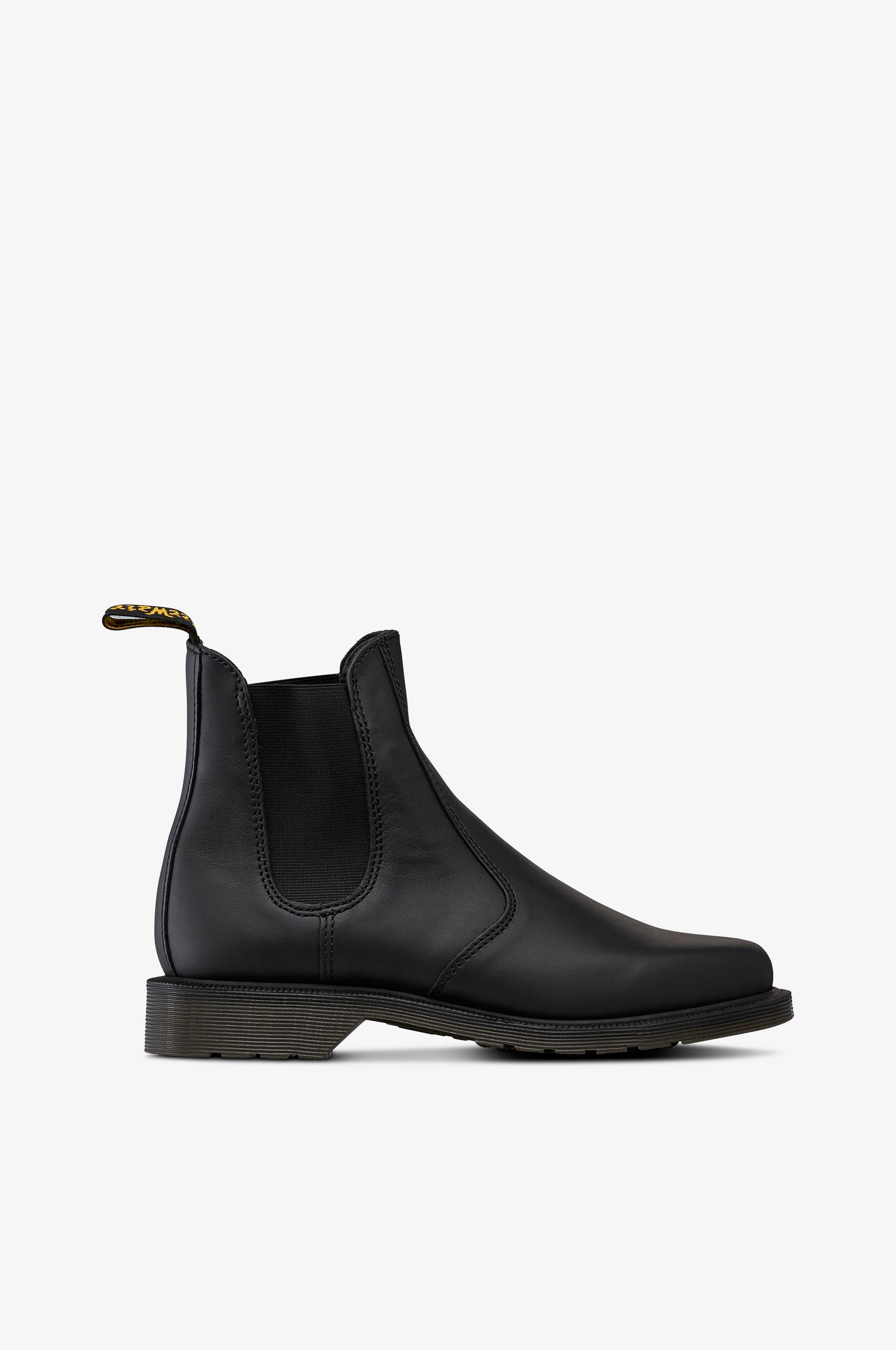Laura är en klassisk chelseaboots från Dr Martens. Bootsen har resår på båda sidor om skaftet och grov Dr Martens-sula i gummi. Vävd hälla bak på skaftkanten. Fodrad med skinn baktill och textil framtill.