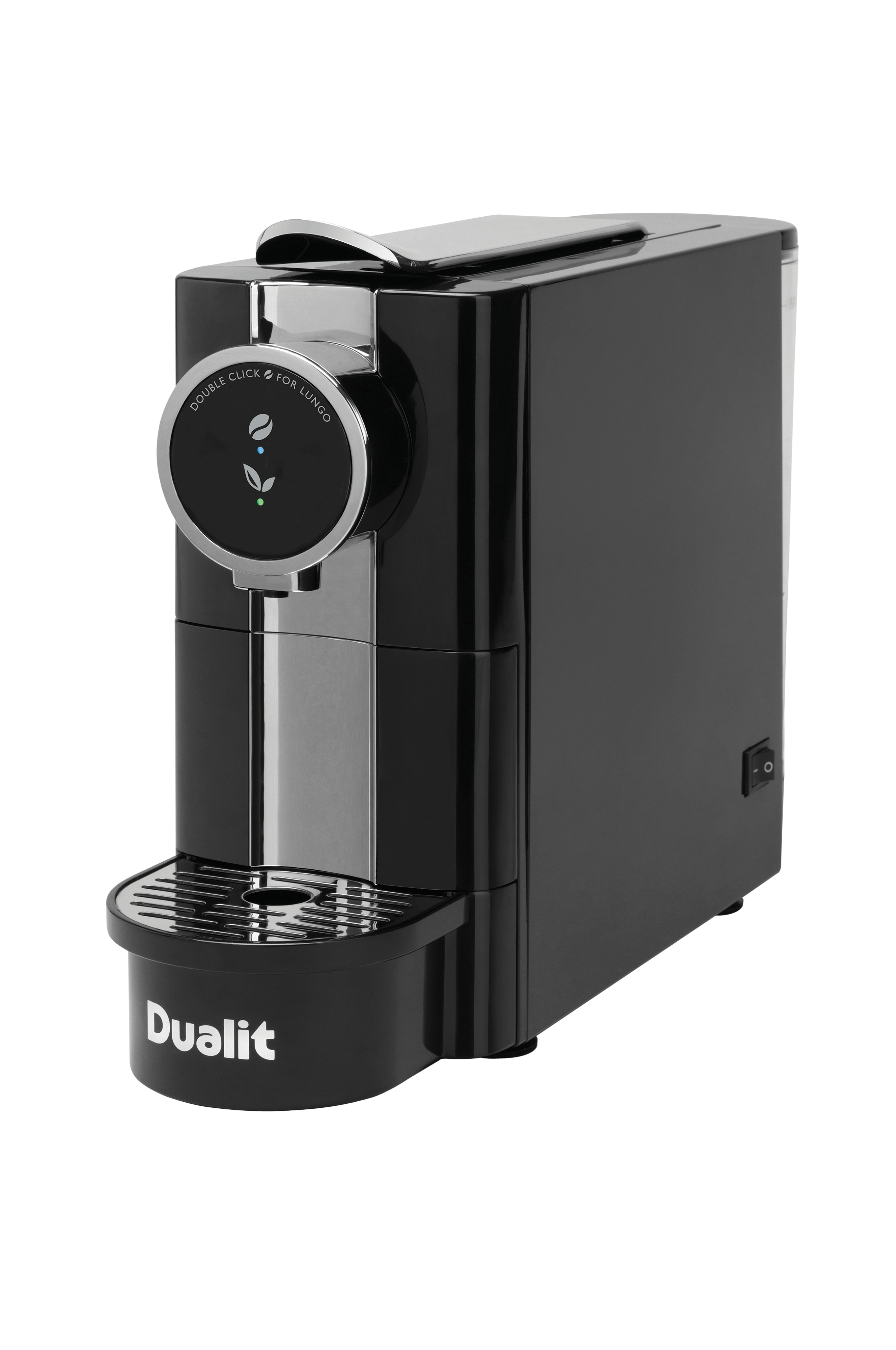 Café Plus, som är kompatibel med både Dualit- och Nespresso®-kapslar, ger dig valet att göra kaffe eller te. Denna kompakta men eleganta te- och kaffemaskin värms upp på bara 40 sekunder och stängs av efter 10 minuters inaktivitet för att minska energiförbrukningen. Med exakt doseringskontroll, för den perfekta espresson, americano eller te, med en temperaturökning för en varmare kopp te. Det programmerbara doseringsminnet gör att du kan ändra mängden. Avtagbar vattenbehållare på 0,8 l.