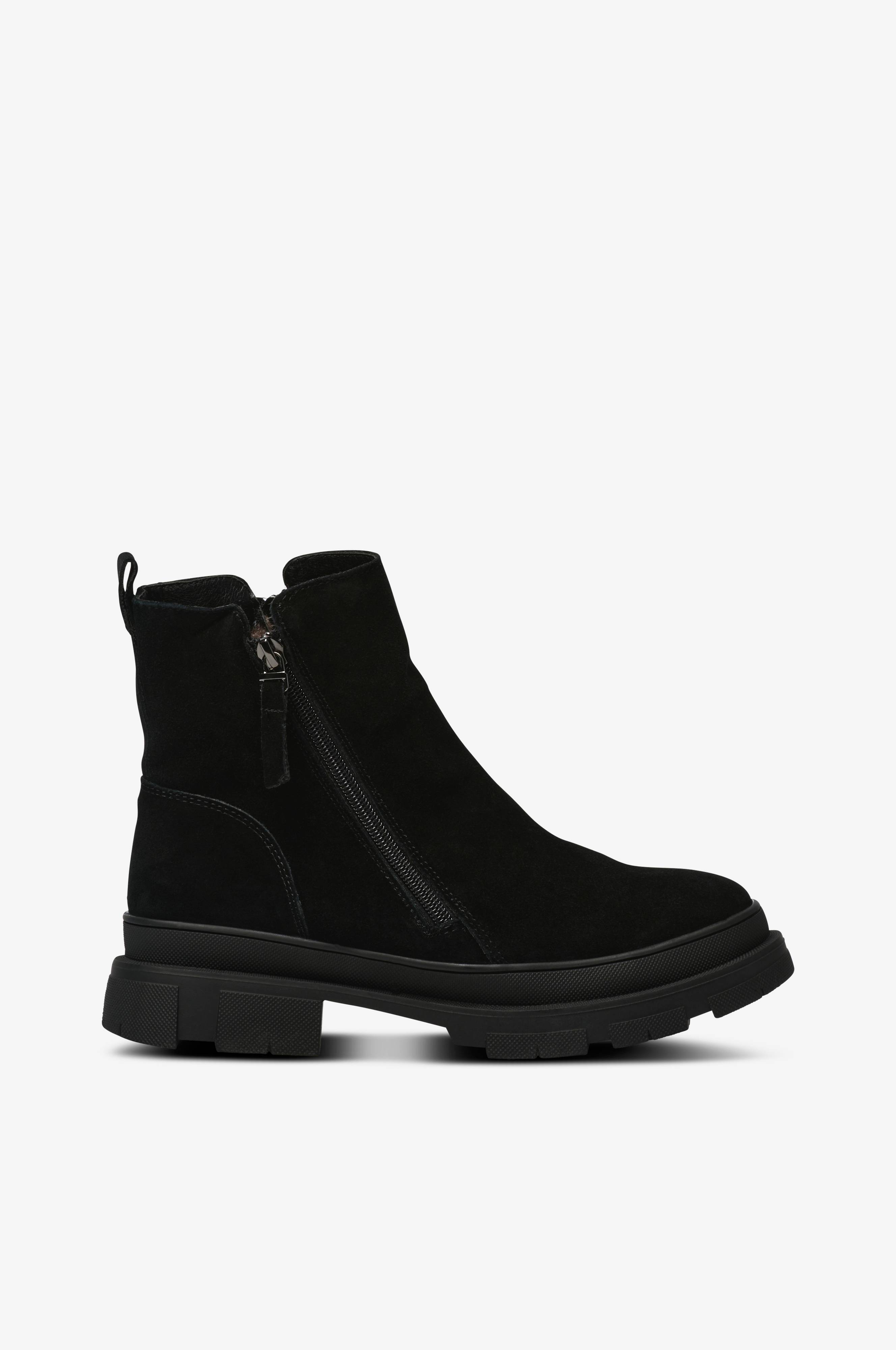 • Boots i mocka• Varmfoder i fuskpäls• Dragkedjor på sidorna• Dragögla baktill• Yttersula i gummi• Skafthöjd: 13 cm i stl 37