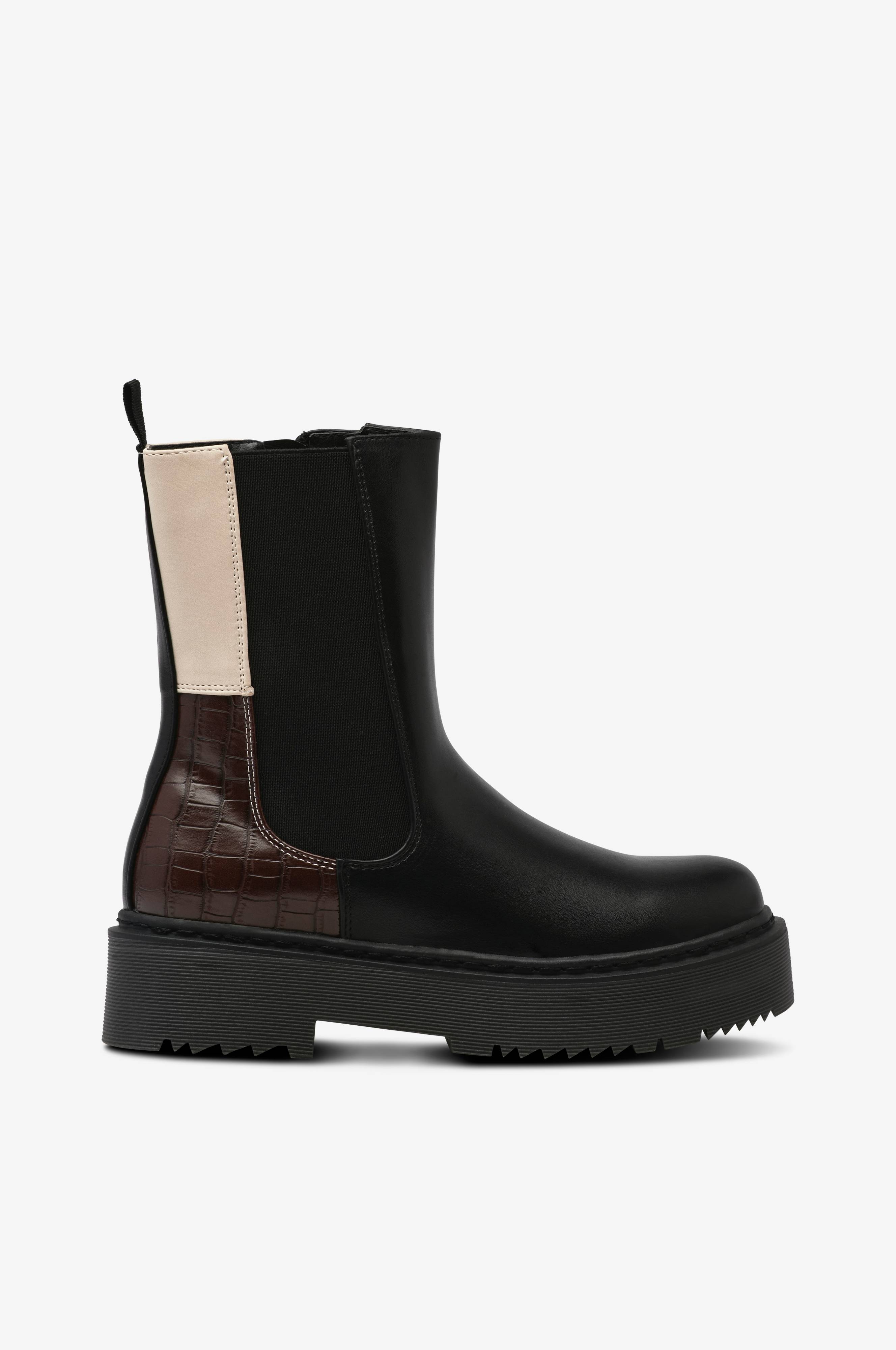 • Boots i skinnimitation• Blockfärgad design• Resårpanel på utsidan av skaftet• Dragkedja på insidan av skaftet• Plattformsula• Skafthöjd: 18 cm i stl 37• Klackhöjd: 4,5 cm• Sulhöjd: 3 cm