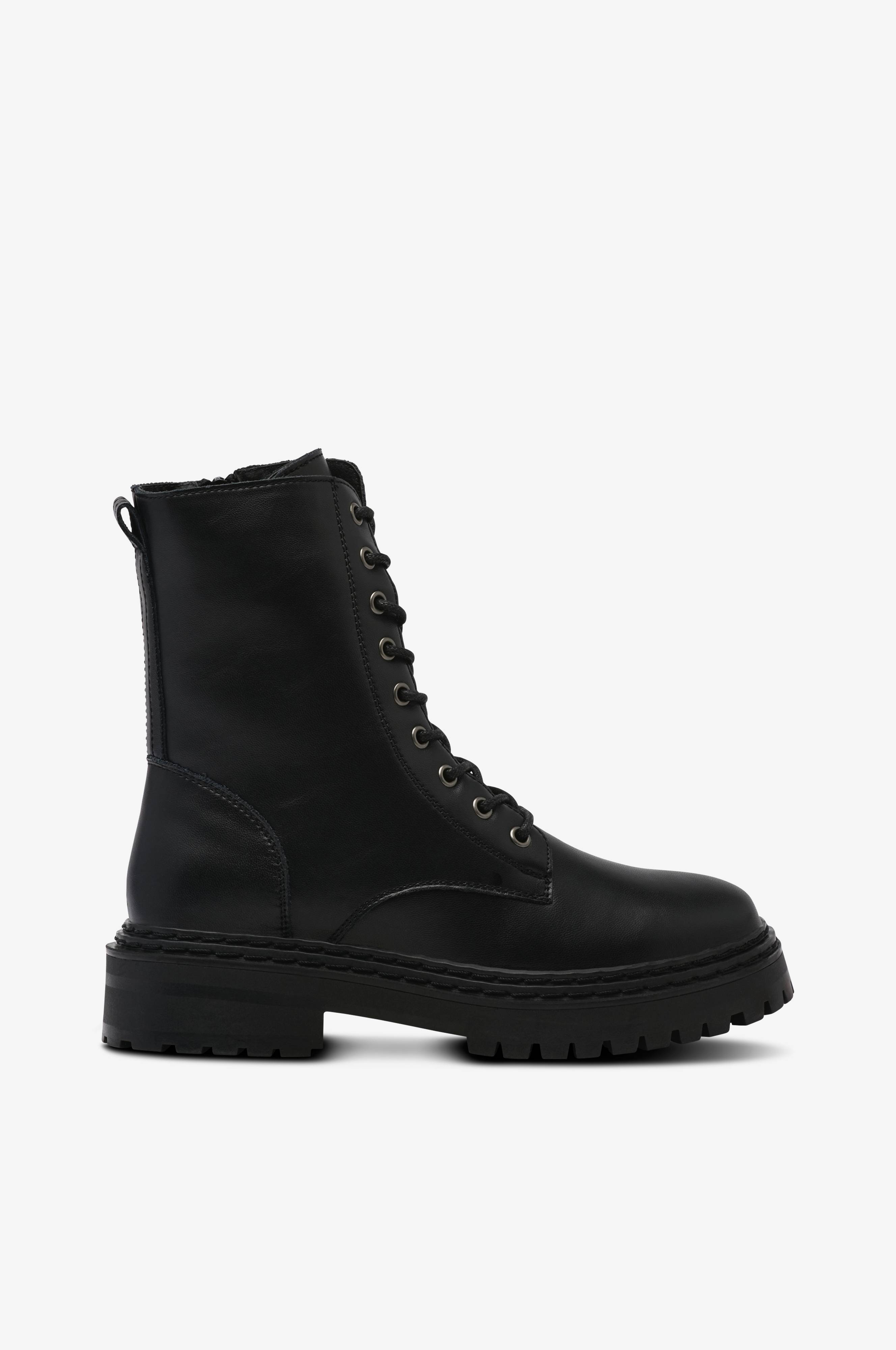 • Kängor i läder• Snörning fram• Dragkedja på insidan av skaftet• Textilfoder• Lätt vadderat skaft• Skafthöjd: 17 cm i stl 37• Klackhöjd: 4 cm