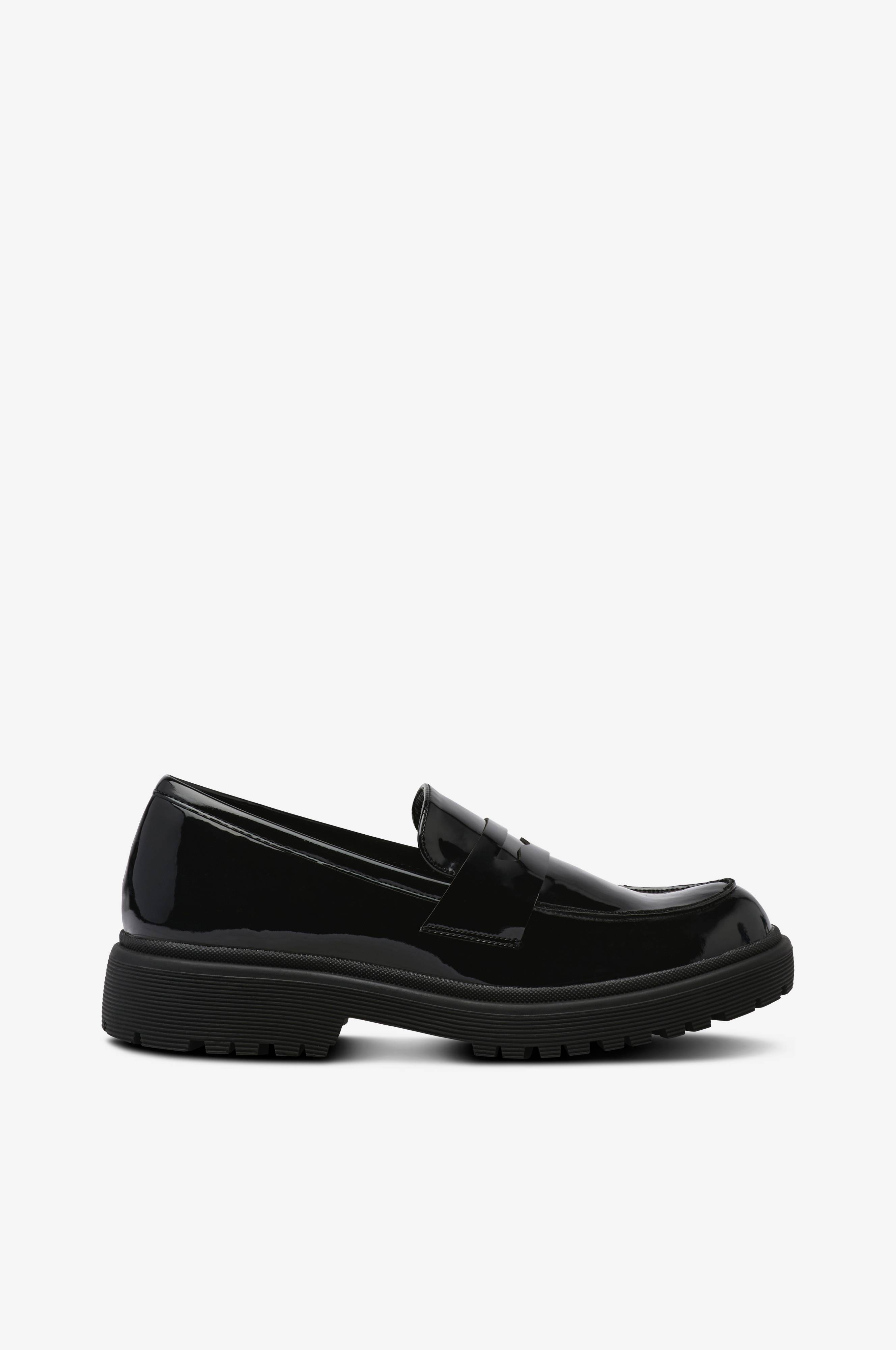 • Loafers i lackad, högblank skinnimitation• Textilfoder• Mönstrad yttersula i gummi