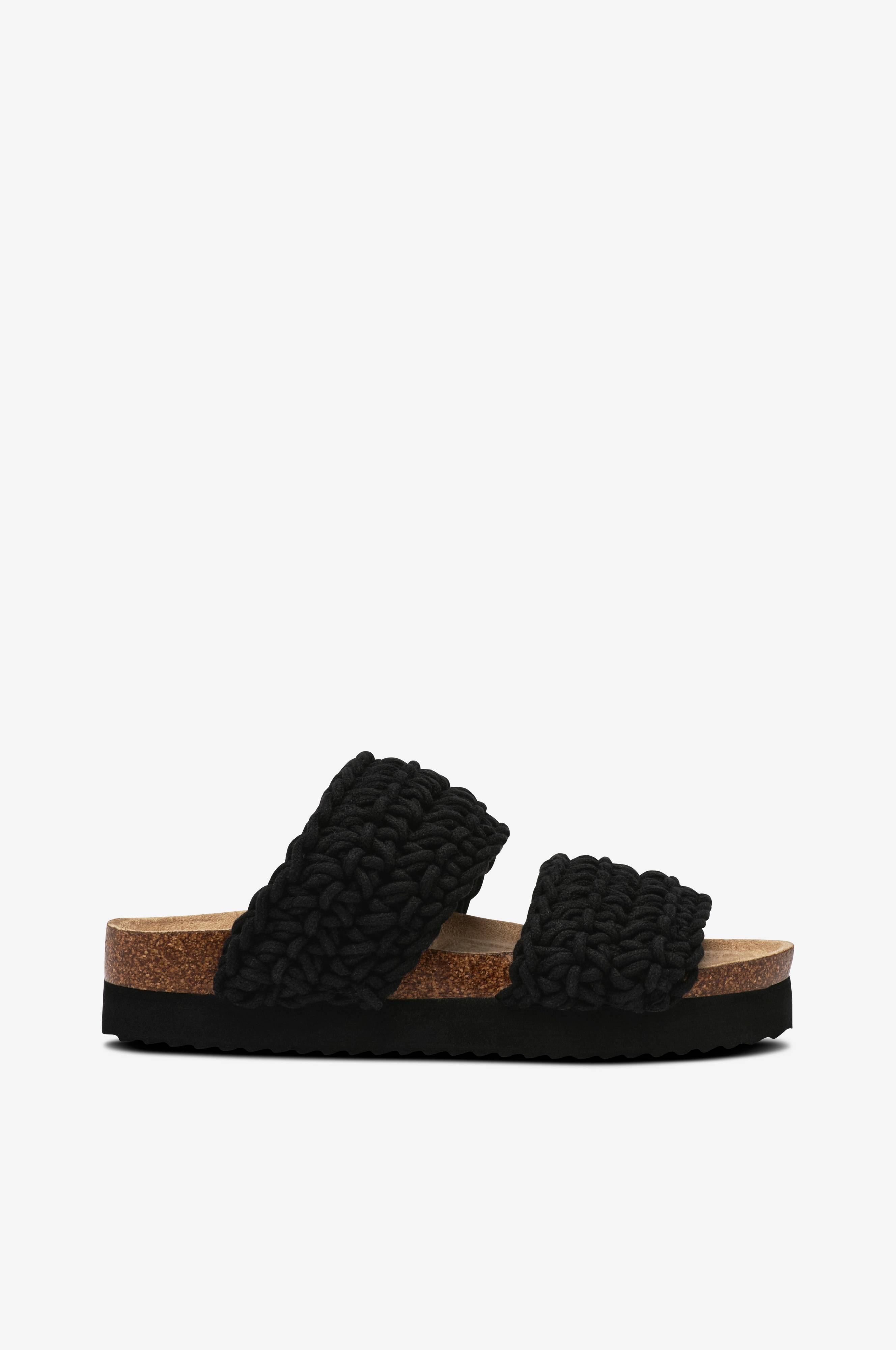 • Remmar i flätad textil• Plattformsula• Formad fotbädd• Yttersula i EVA• Sulhöjd: 4 cm