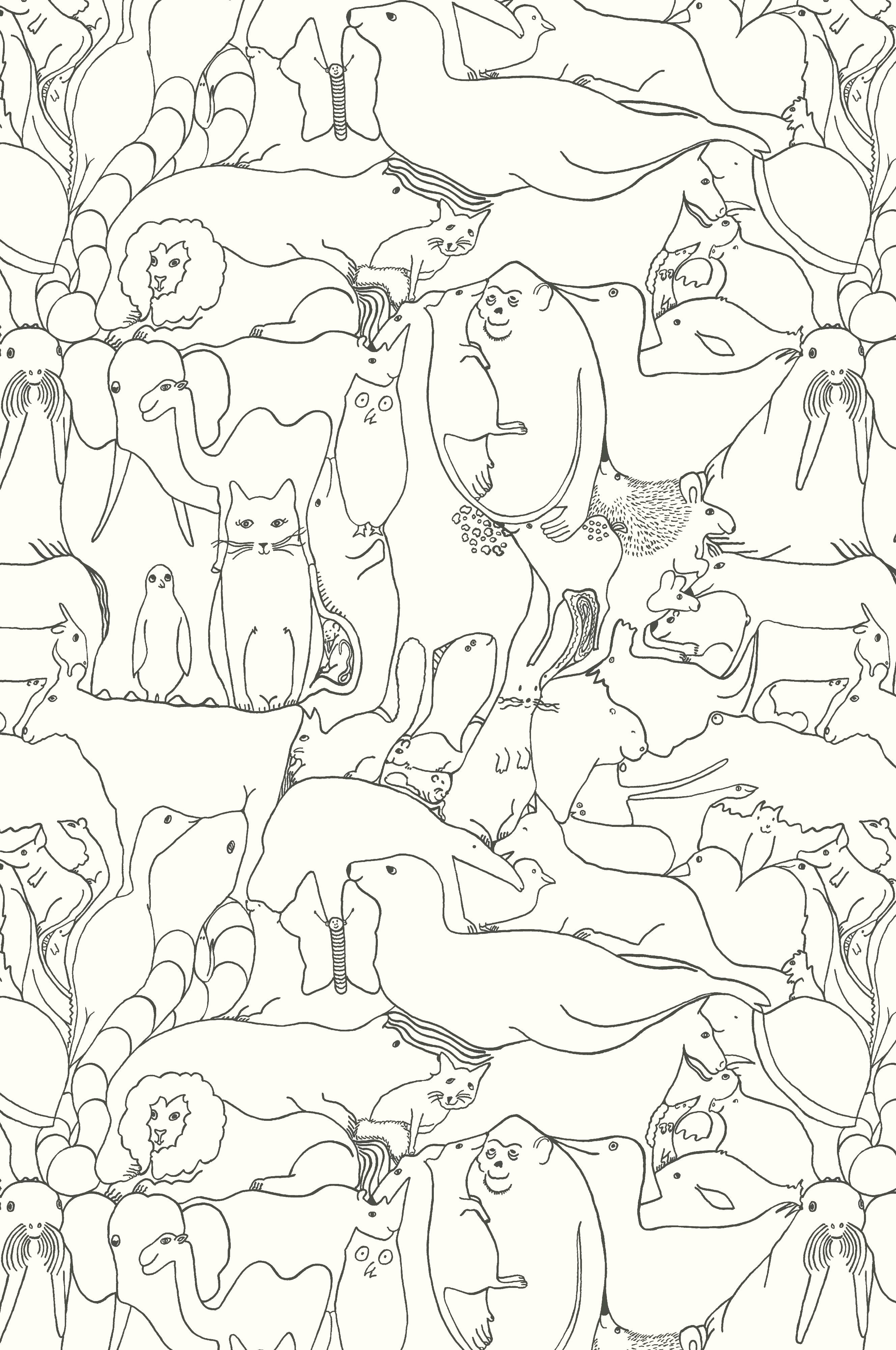 Tapetprov till tapet Djurriket, färg vit.Mått på detta prov är ca 210 x 297 mm (motsvarar en A4-sida).