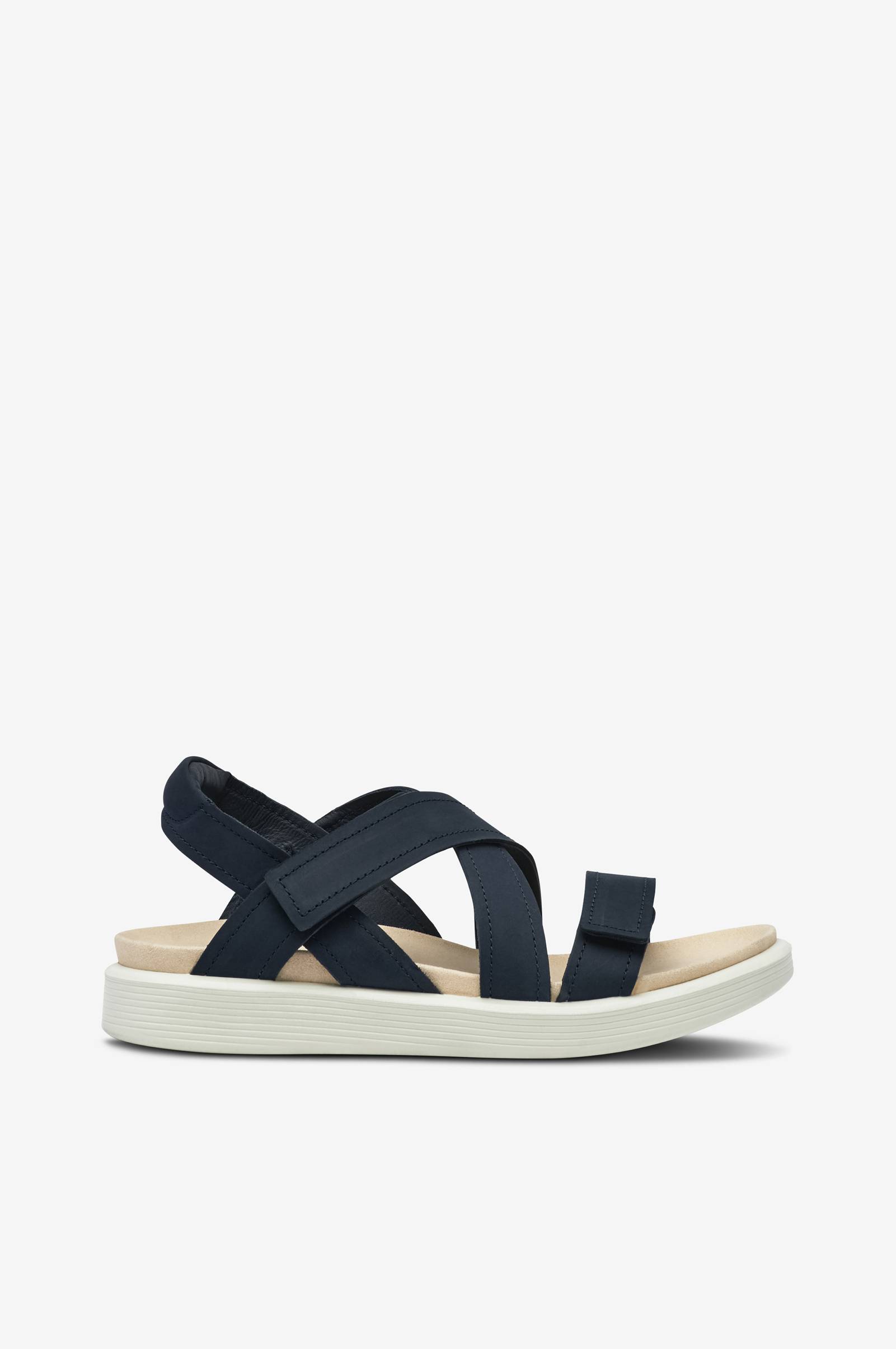 • Remmar i läder• Justerbar kardborreknäppning• Vadderad rem runt hälen• Formad fotbädd