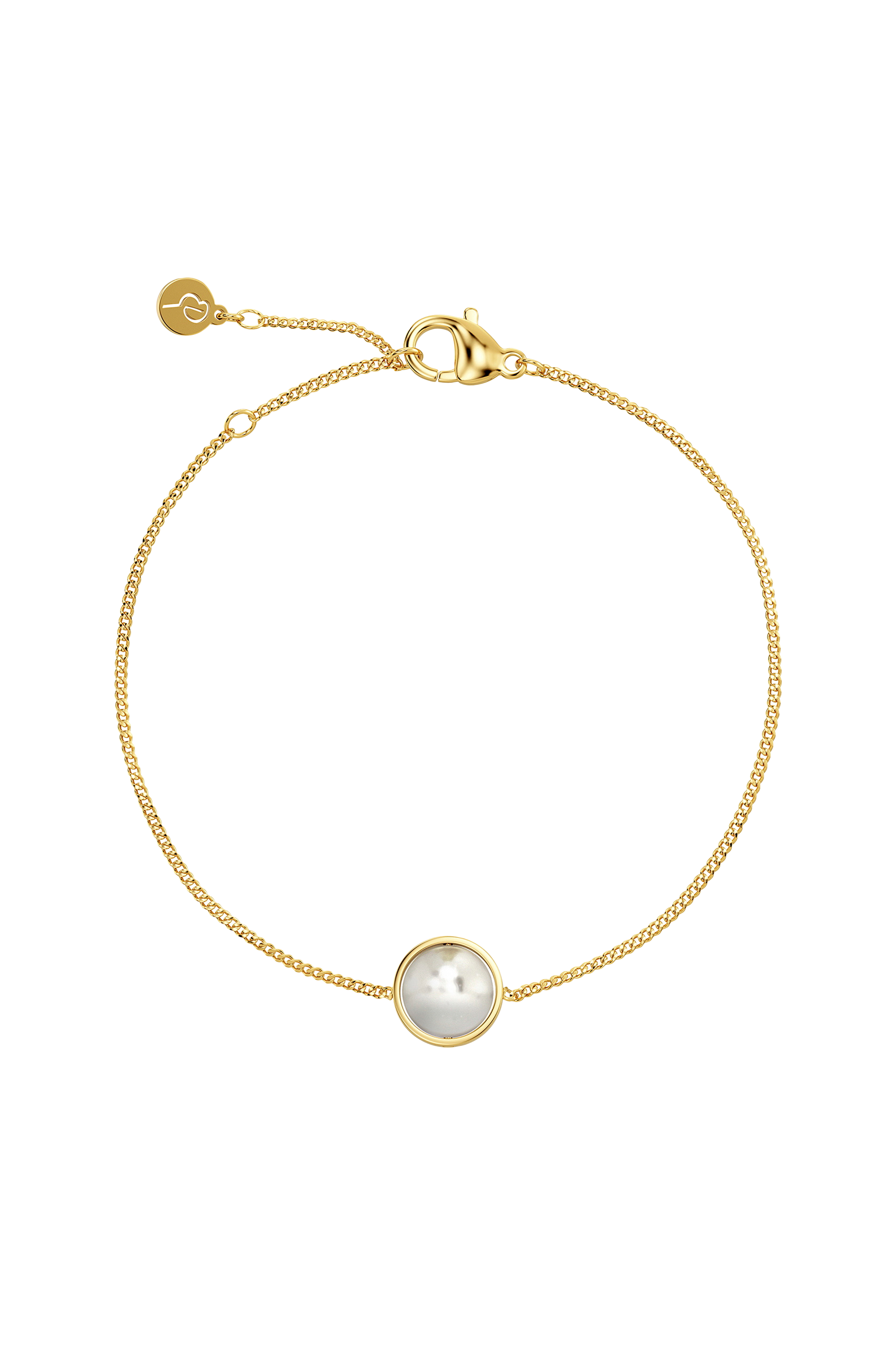 • 14K guldpläterat armband i rostfritt stål• Dekorativ, hängande pärla• Justerbar längd• Nickelsäker• Vattentålig