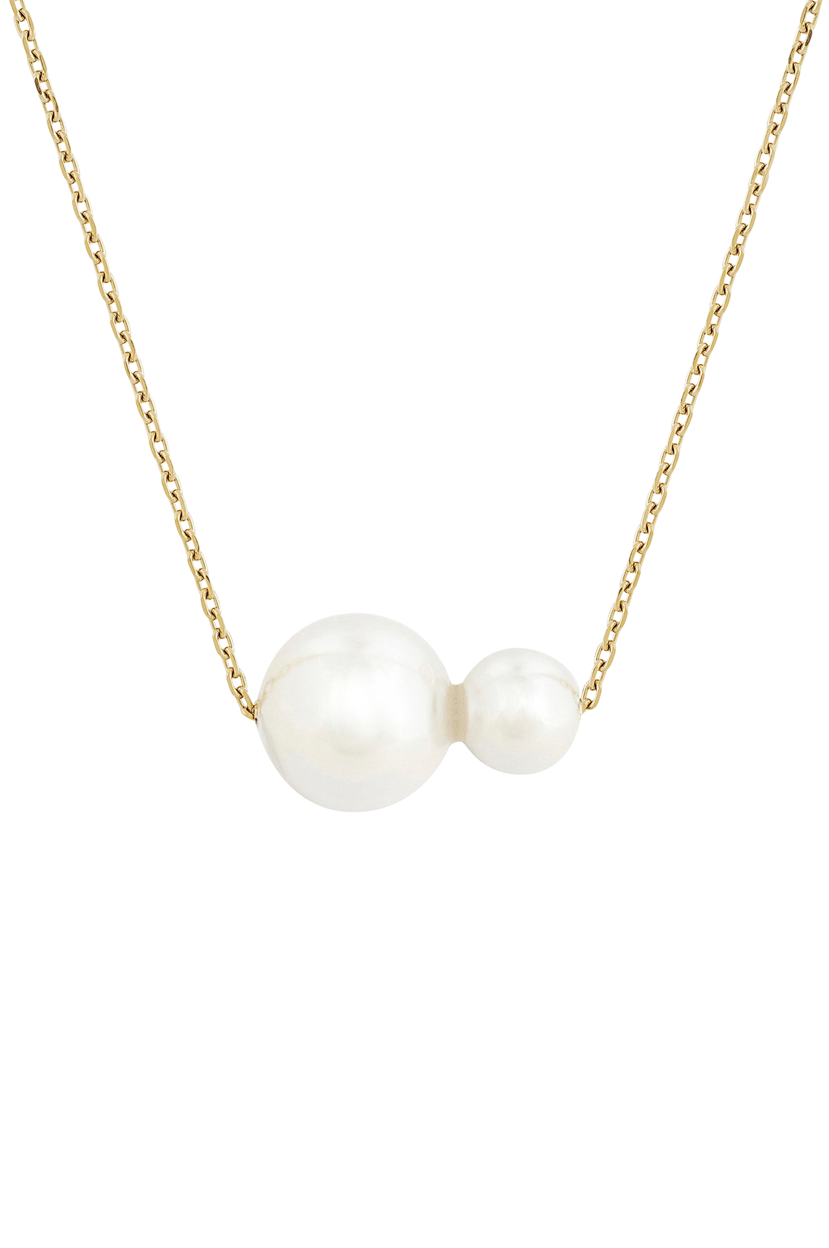 • Nickelsäker modell i rostfritt stål• 14K guldplätering• Pärlemorpärlor 8 mm och 5 mm• Kedja: längd 42 – 45 cm
