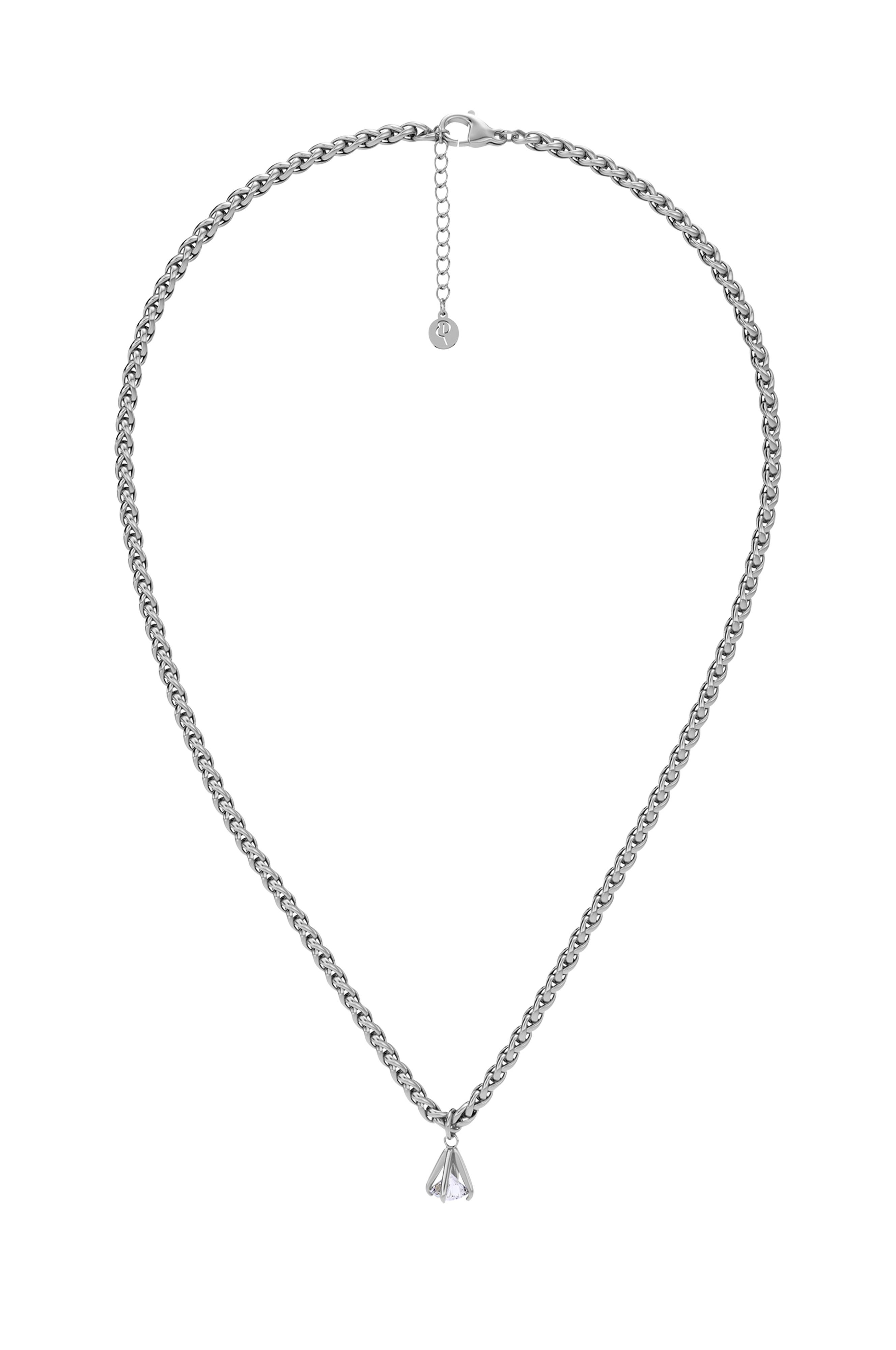 • Blankt halsband i rostfritt stål med justerbar kedja och dekorativt hänge i kubisk zirkonia• Stängning med öljett och karbinhake• Vattentålig• Nickelsäker• Mått på hänge: 7 mm• Längd på kedja: 45-48 cm