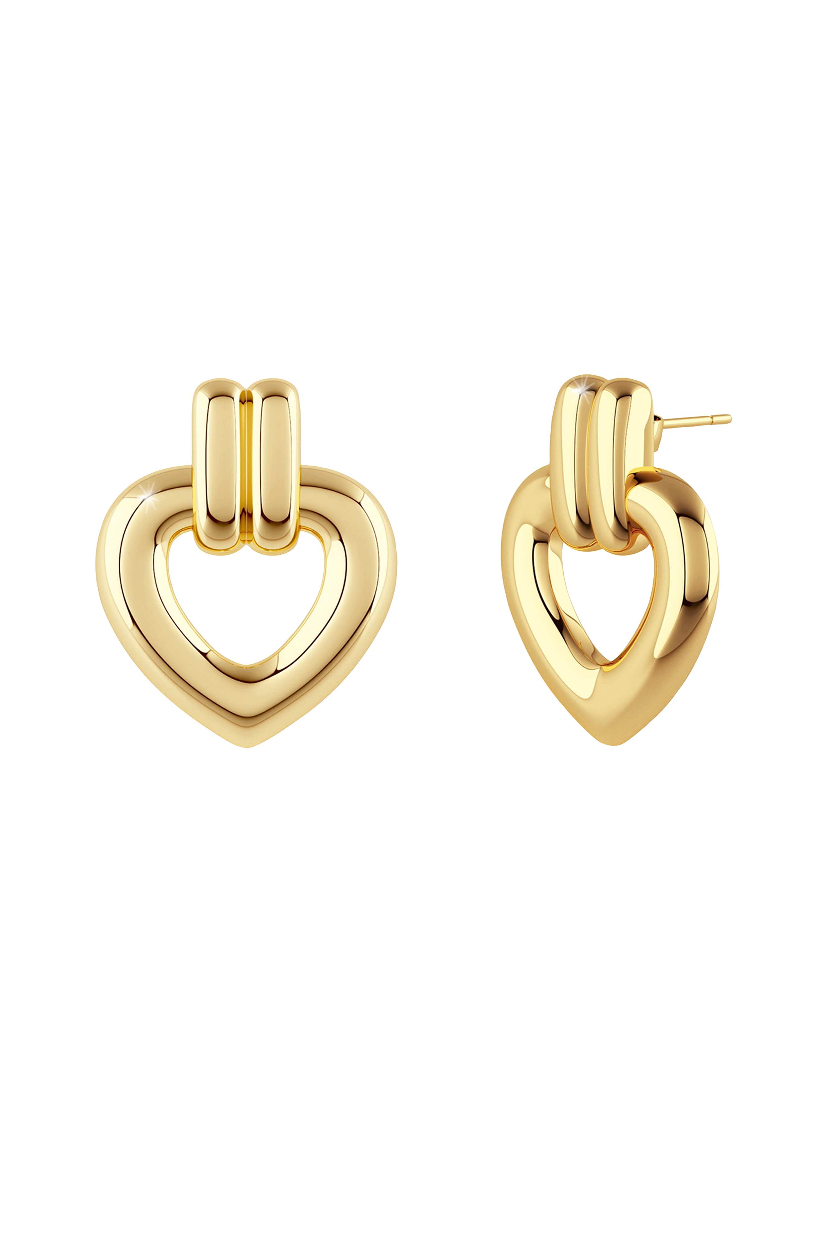 • Hjärtformade örhängen med en fast länk som håller hjärtat• Nickelsäkra• Av rostfritt stål med blank 14K guldplätering• Storlek: 26x21 mm