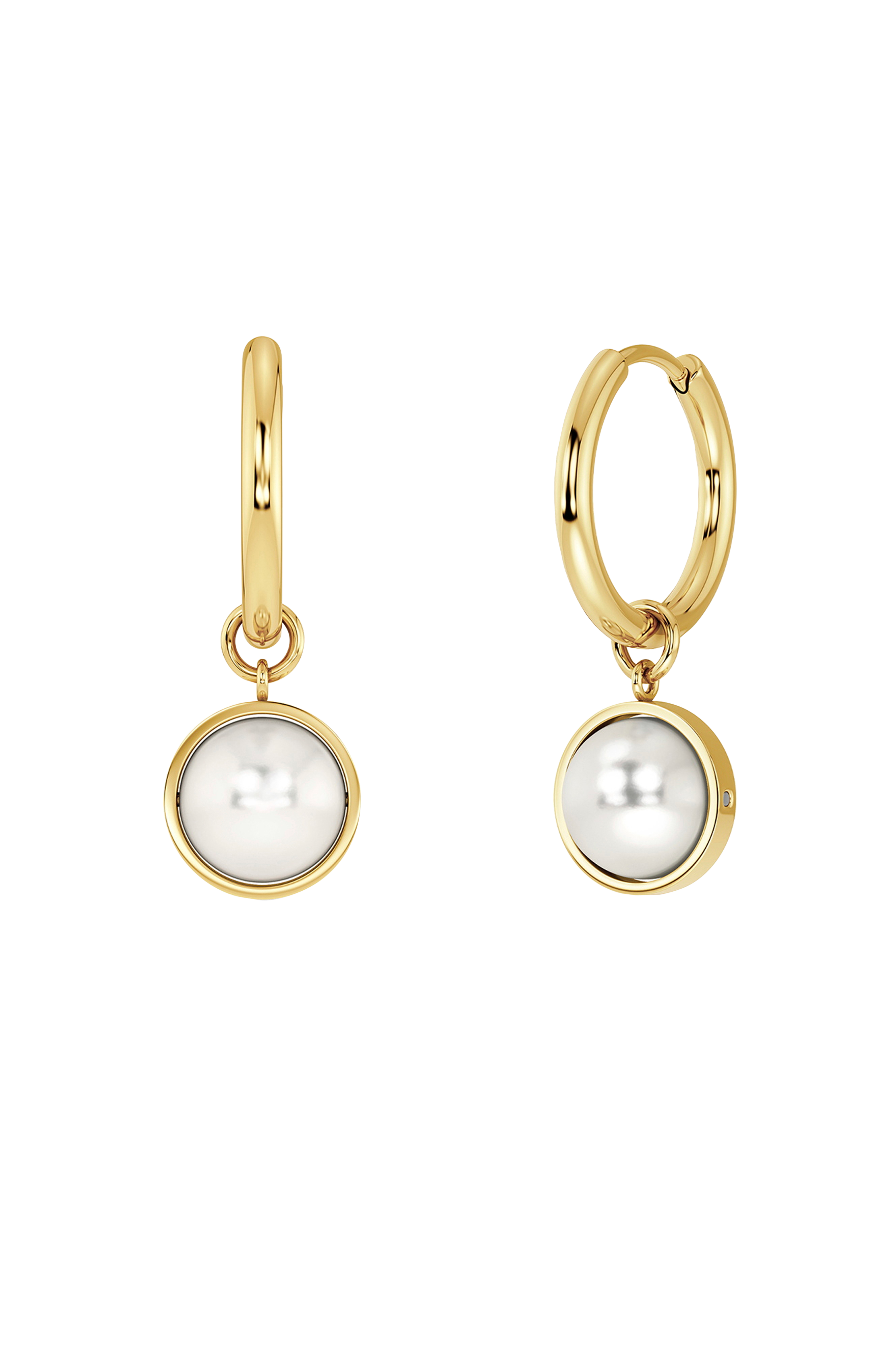 • 14K guldpläterade ringar i rostfritt stål• Dekorativ, hängande pärla• Nickelsäkra• Vattentåliga