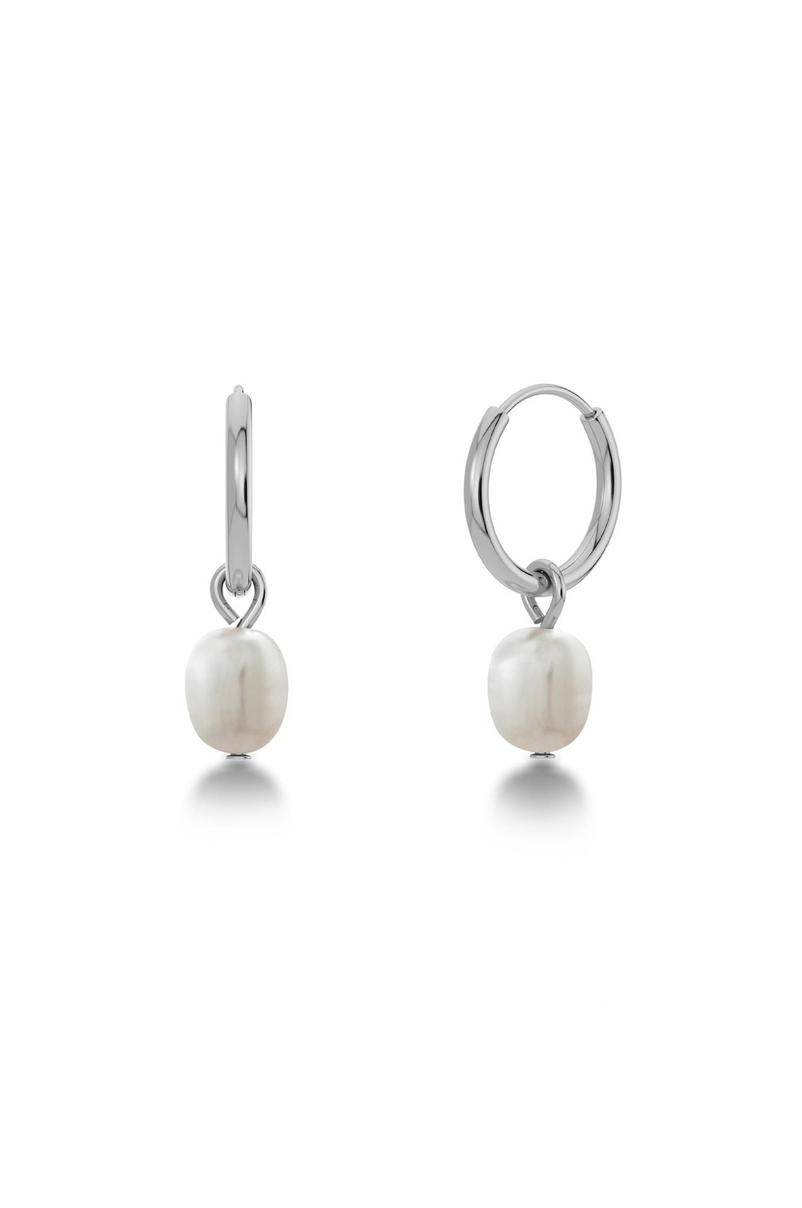 • Runda örhängen i rostfritt stål• Dekorativ, hängande pärla• Nickelsäkra• Vattentåliga