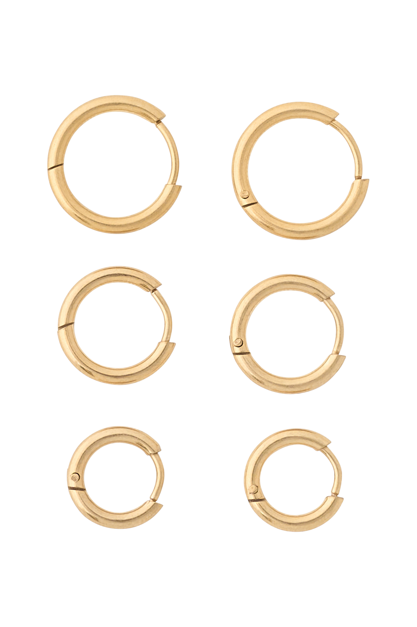 • 3-par, runda örhängen i 14K guldpläterat rostfritt stål• Olika storlekar