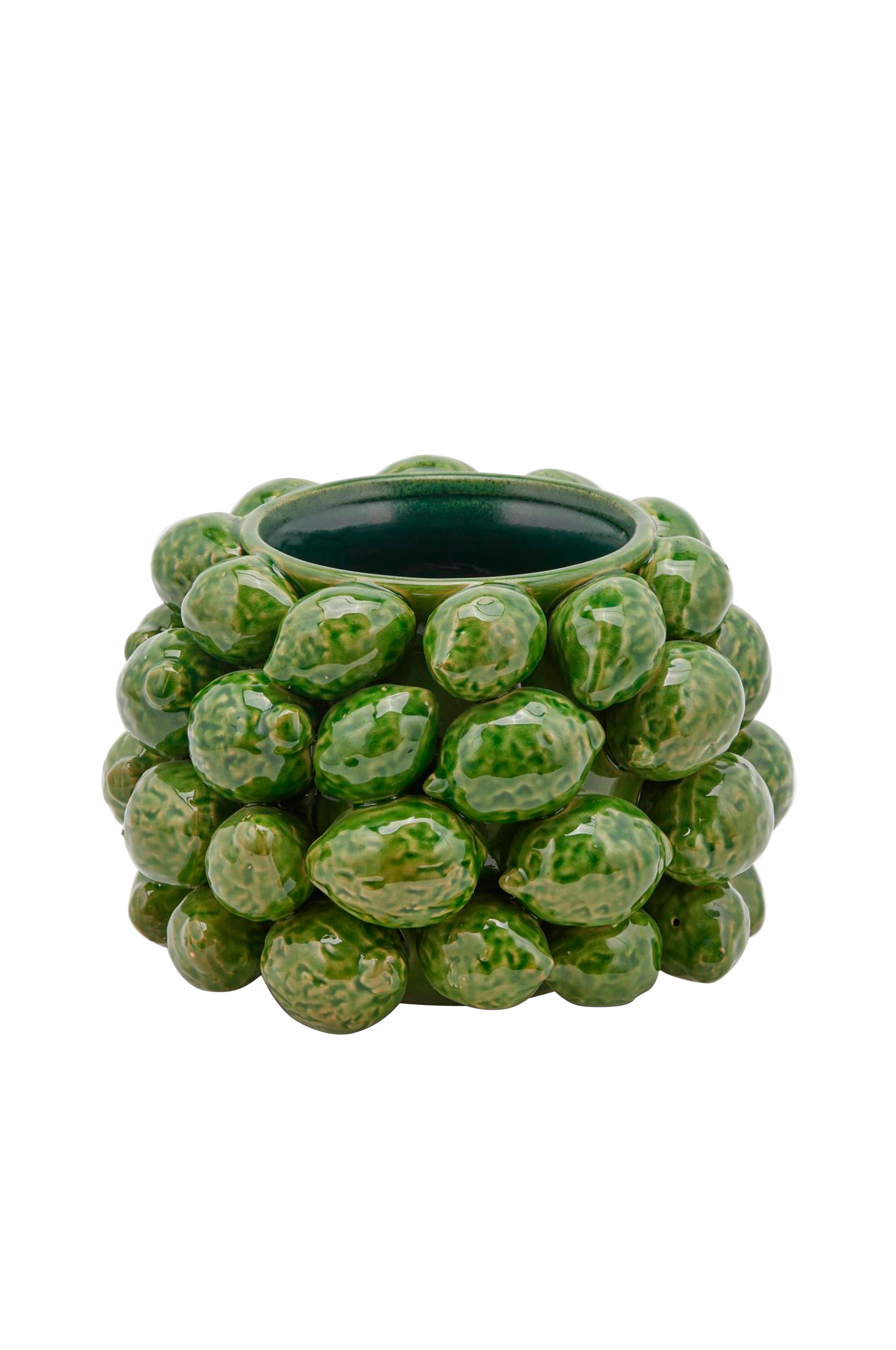 Vi kan inte få nog av citroner och lime! Denna härliga vas är tillverkad av keramik och passar lika bra inomhus som utomhus! Kan användas både som kruka och vas eller helt enkelt bara som den är. Storleken är 19x28 cm, innerdiameter 14 cm. Rengörs varligt med ljummet vatten och mjuk trasa.