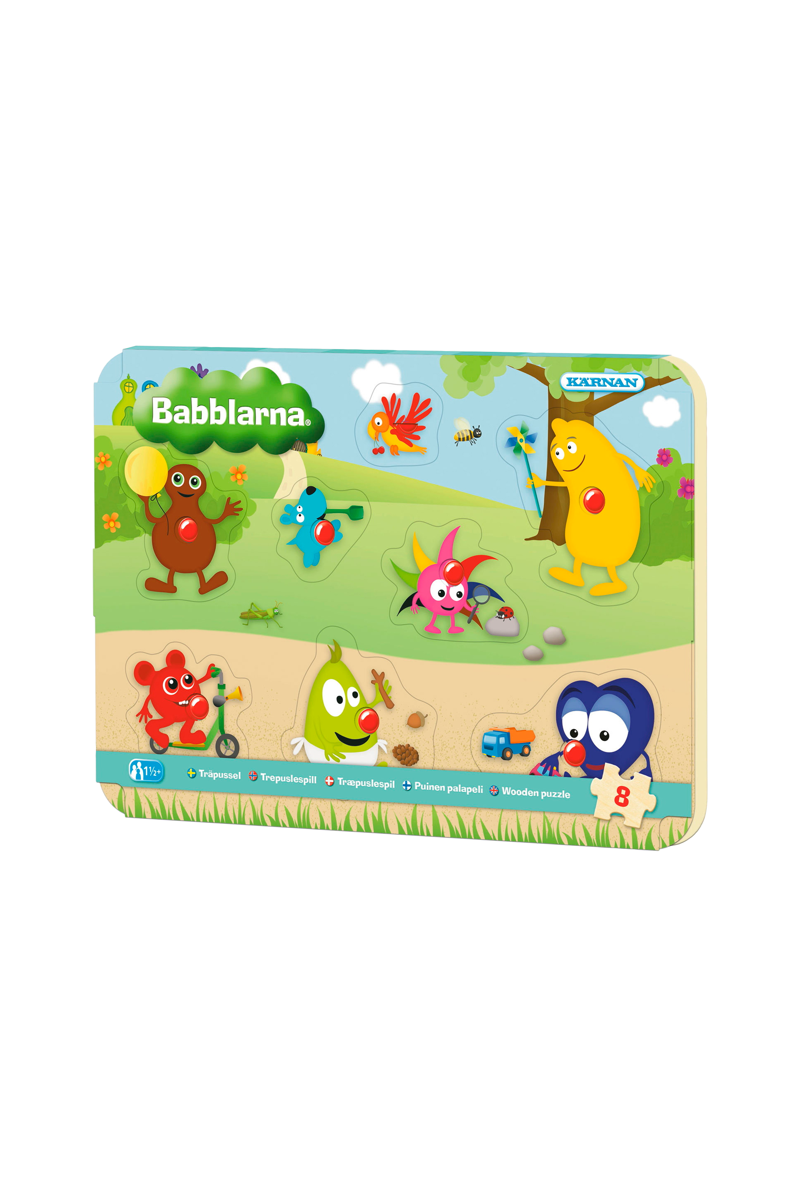 Ett färgrikt pussel med Babblarna. 8 bitar med greppvänliga knoppar.