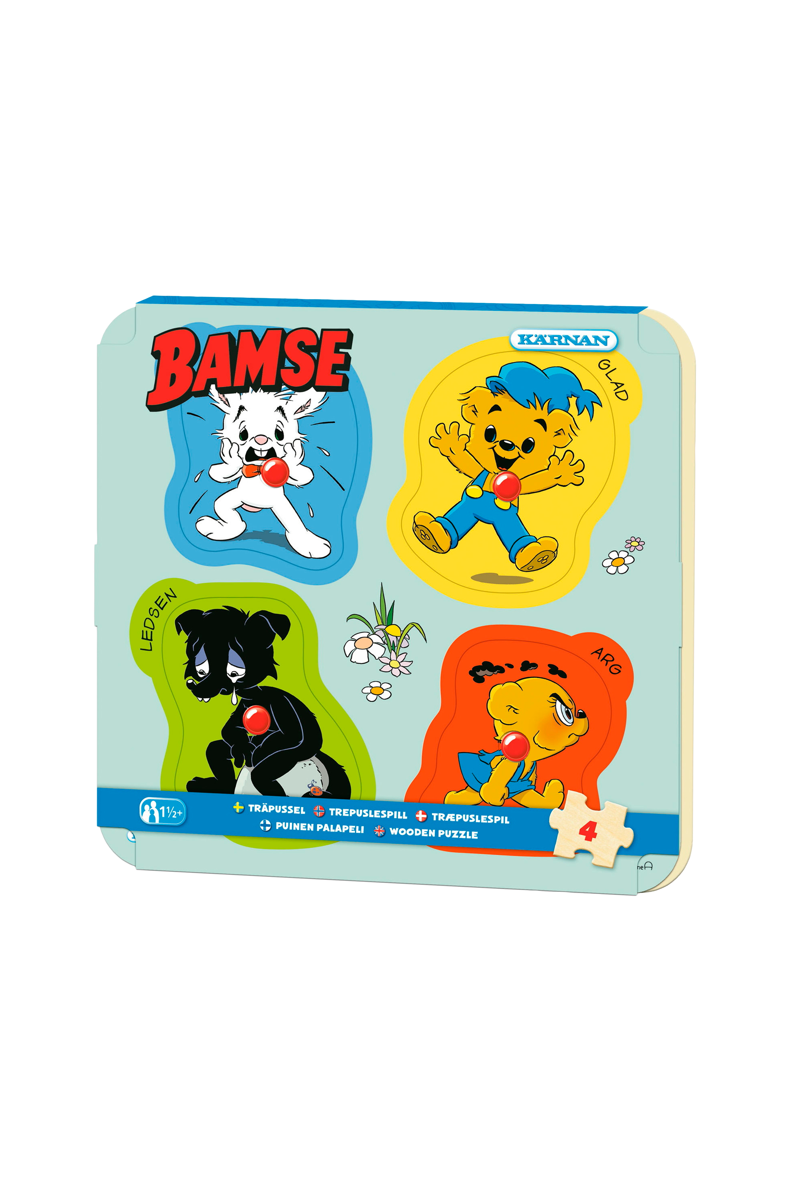 Ett lärorikt och kul knoppussel om känslor. 4 bitar av trä med greppvänliga knoppar.