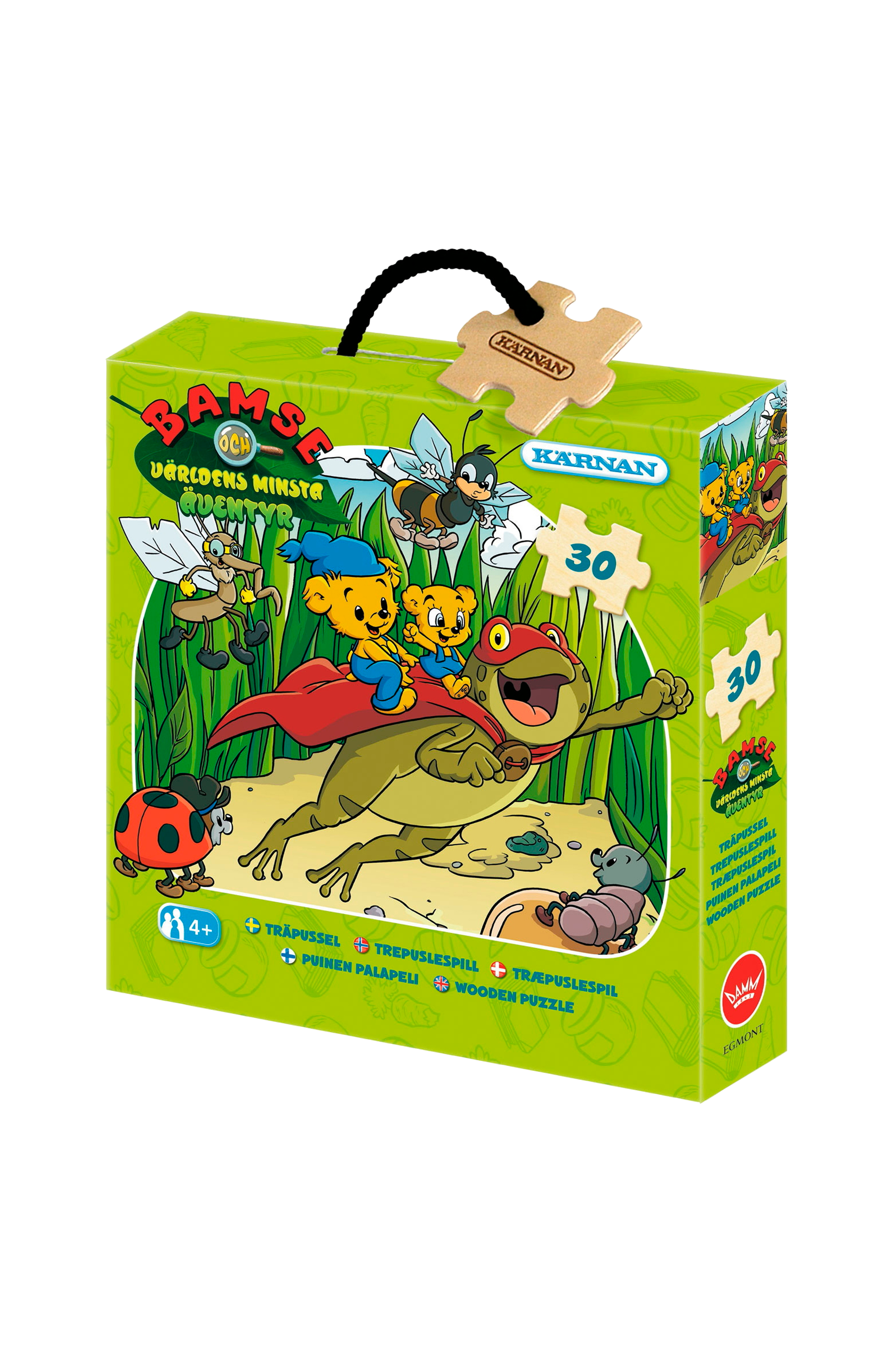 Ett pussel av trä med motiv från filmen Bamse och världens minsta äventyr. Det har 30 bitar och en praktisk ask för förvaring.