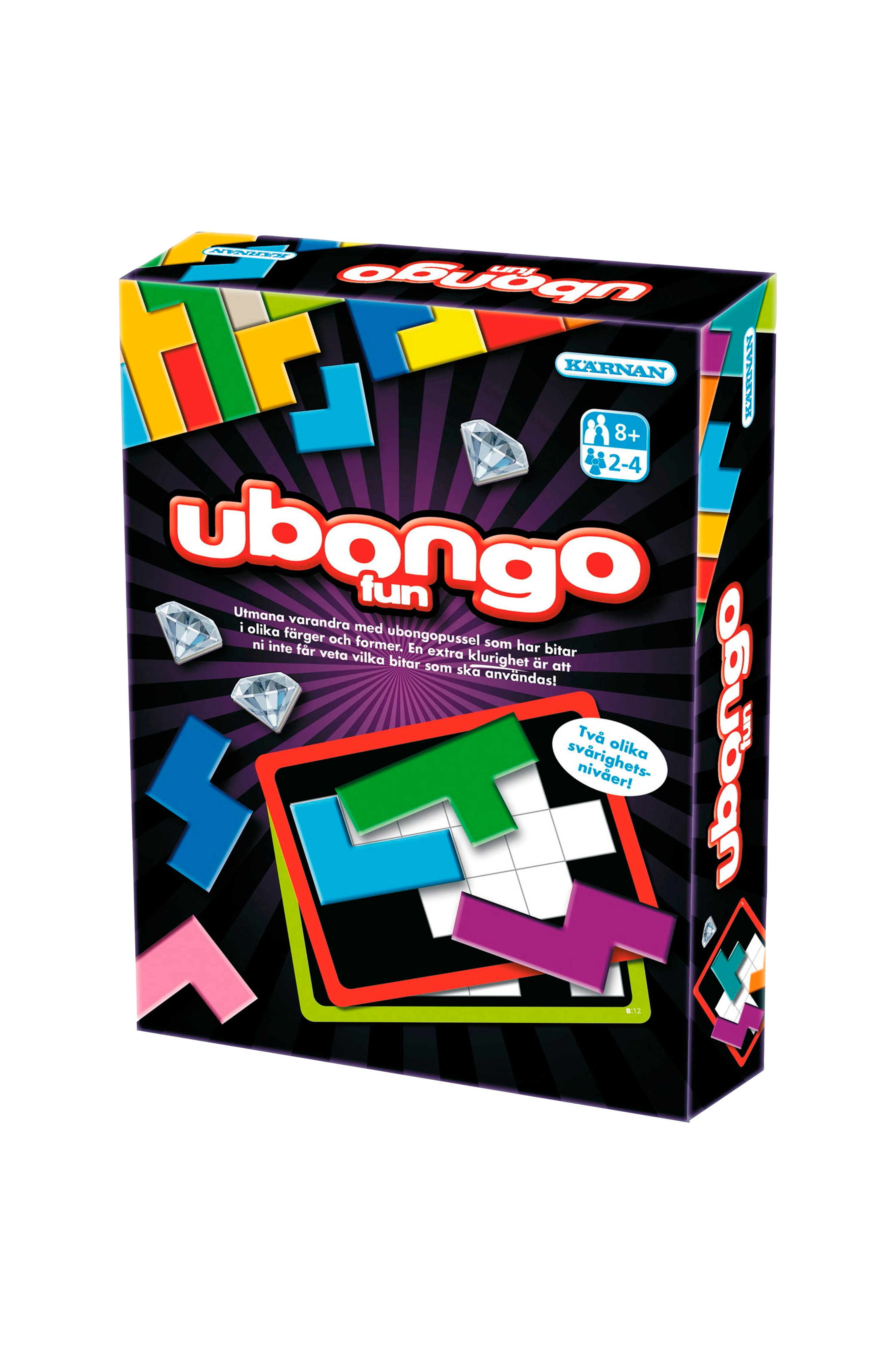 Utmana varandra med Ubongopussel som har bitar i olika färger och former. Alla spelar med olika spelkort och löser samtidigt olika pussel. Skillnaden är här att ni inte får veta vilka bitar som hör till pusslen.