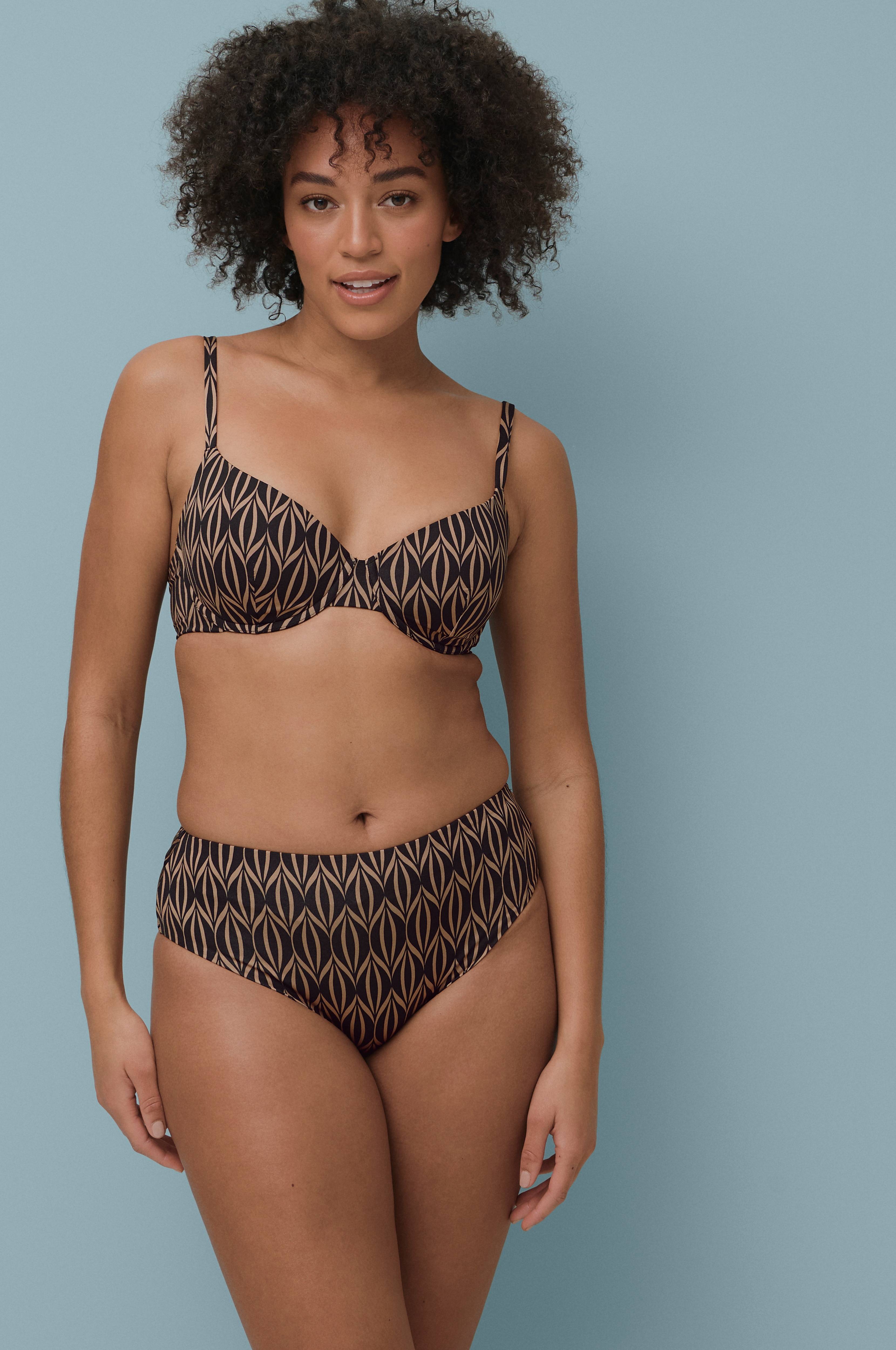 Bikini-bh med formpressade, lätt vadderade kupor med bygel. Justerbara axelband och metallspänne i ryggen.