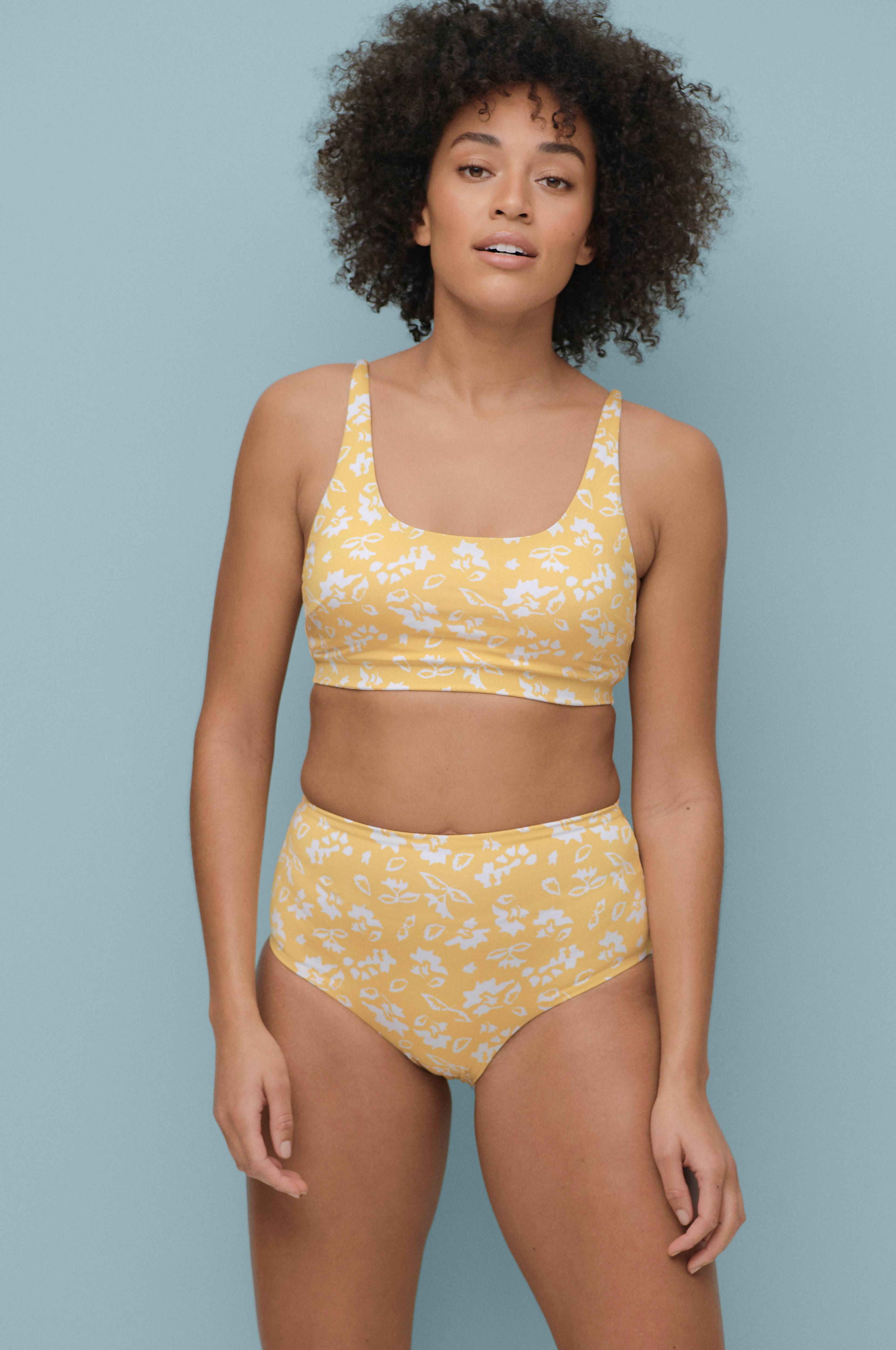 Bikinitrosa med smal resår i midjan och dold resår längs benöppningarna. Helfodrad.