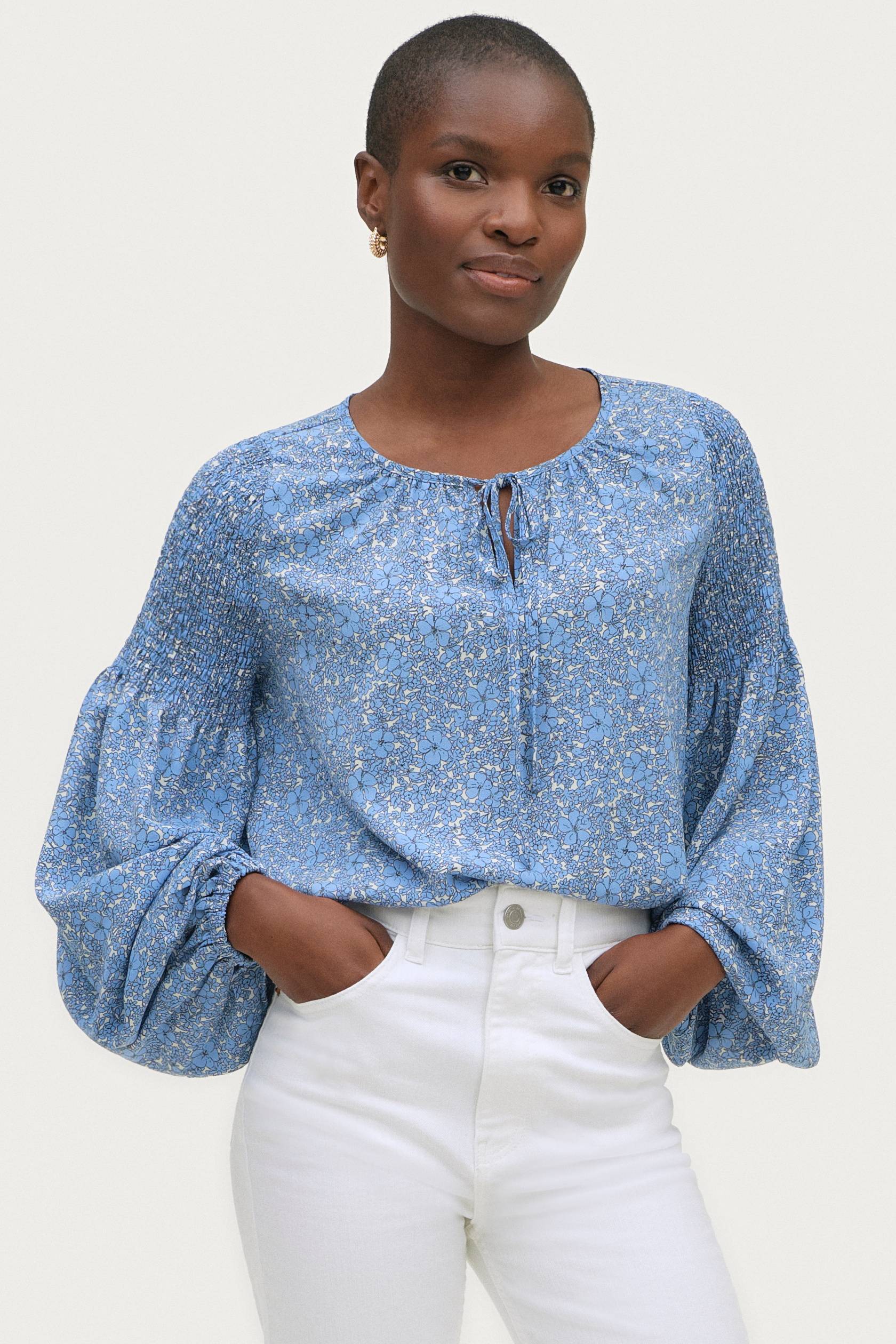 • Långa, voluminösa ballongärmar med elastiska ärmslut och smock upptill• Rund halsringning med sprund och knytband fram• Längd: 67 cm i storlek 34/36